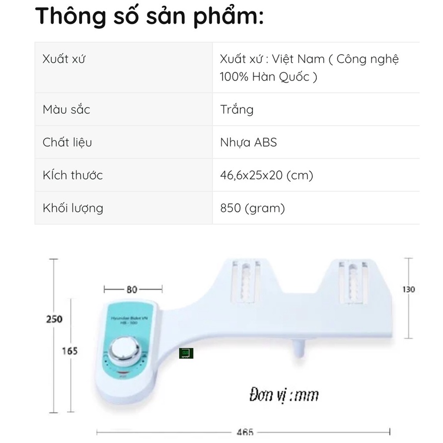 Giới thiệu Vòi rửa vệ sinh thông minh Hyundae Bidet HB100, BH 3 Năm, đổi lỗi 15 ngày, Linh Kiện Nhập Khẩu 100% Hàn Quốc