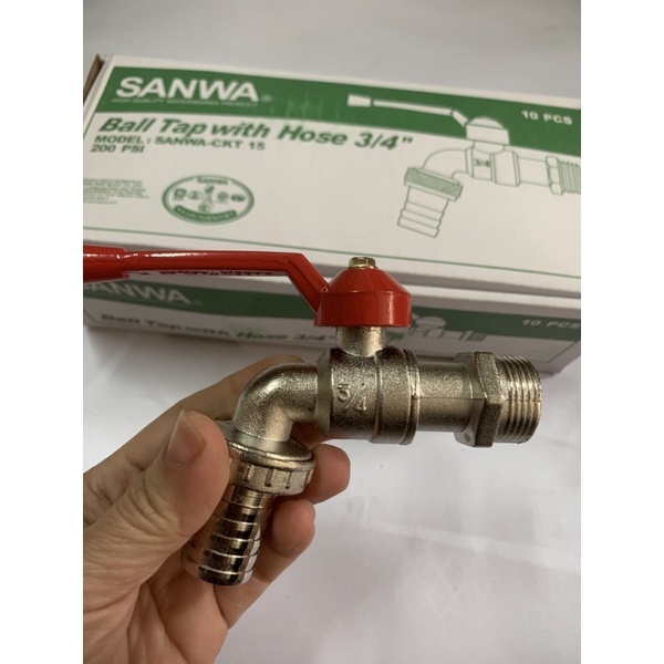 Vòi vườn sanwa tay gạt đóng mở nhanh, nước chảy mạnh, dùng để xả hồ, có mỏ lắp ống mềm tưới cây sân vườn rất tiện lợiChất liệu : vòi làm bằng đồng thau xi mạ niken chống ố bẩn, chân ren vòi không xi mạ niken để khách hàng biết vòi bằng đồng thau thật chứ không phải là hợp kim atimon