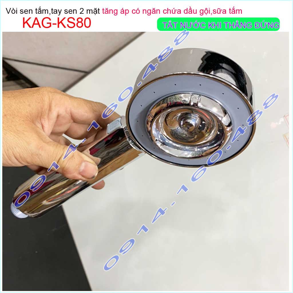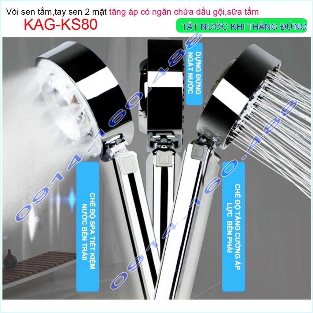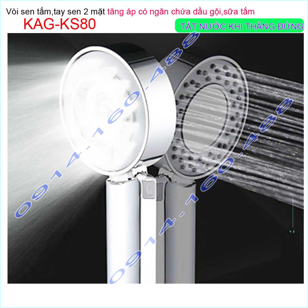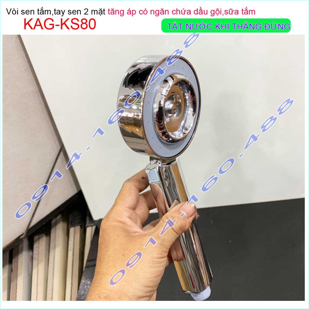 Vòi sen 2 mặt phun sương-tia sen tắm KAG-KS80 (không dây), bát sen tắm đa năng sen tắm kết hợp sử dụng tinh dầu
