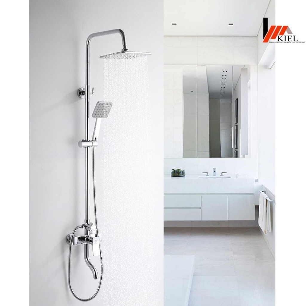 Vòi sen cây tắm đứng nóng lạnh Hàn Quốc đồng mạ crom cần tròn, bát vuông TBVS89-Bảo hành 24 tháng