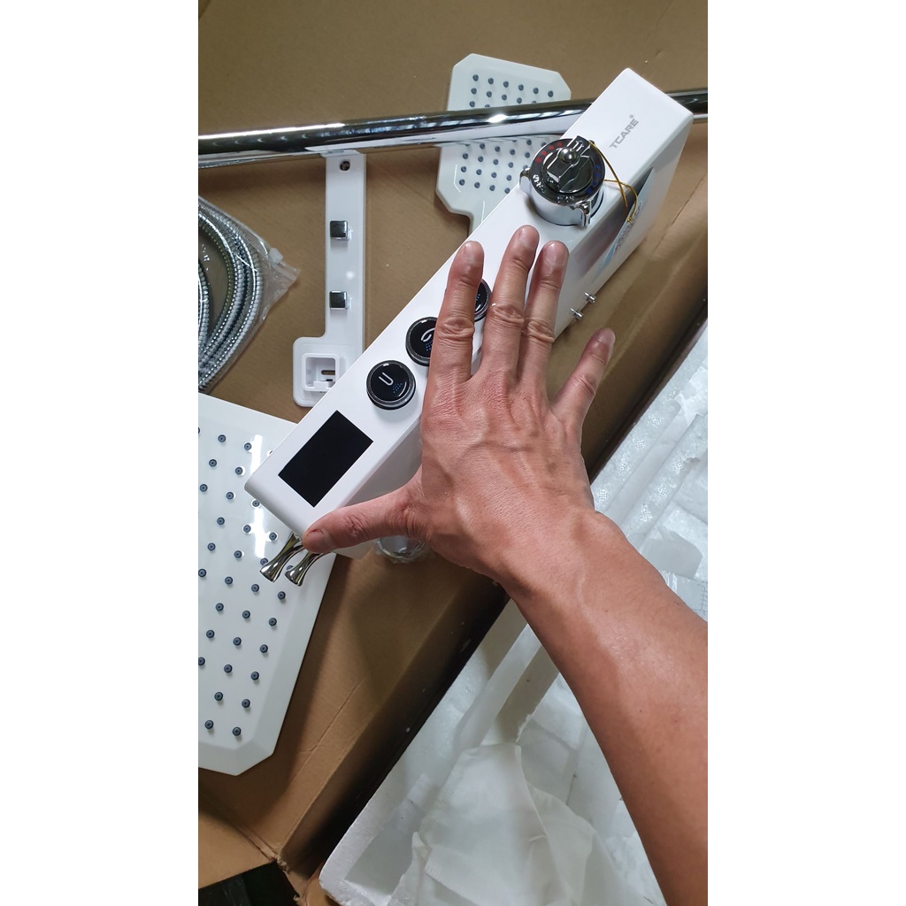 Màn hình hiển thị Số bao gồm: Hiển thị nhiệt độ, hiện thị thời gian xả nước theo thời gian thực, Và không cần dùng mà nó tự sinh ra điện từ nước chảy và nhiệt độ.