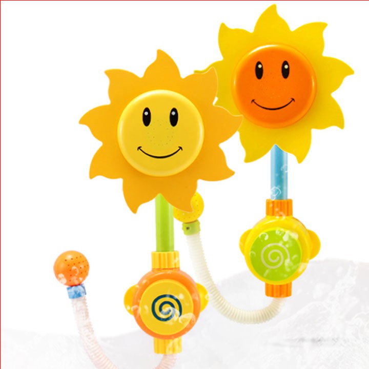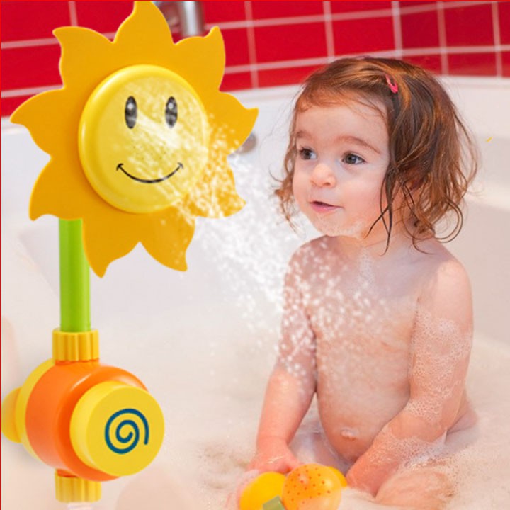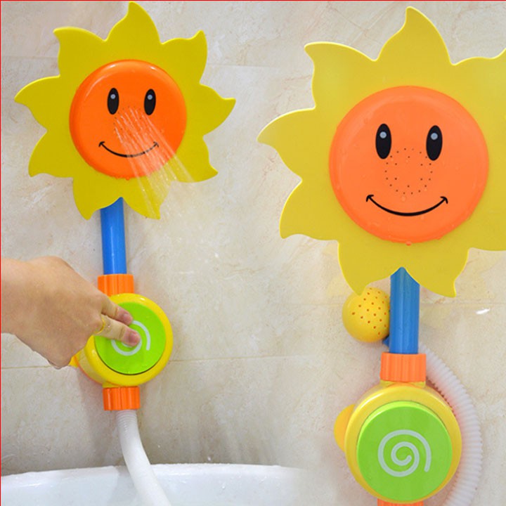 Vòi sen cho bé hình hoa hướng dương– Cách sử dụng: Các Mẹ gắn vòi sen vào tường bằng núm hút chân không, đầu vòi thả vào chậu tắm của bé, khi bé nhấn nút vòi sen sẽ phun nước ra từ đài hoa. Chắc chắn các bé sẽ rất thích thú với món đồ chơi này và sẽ luôn thích thú mỗi khi tắm gội
