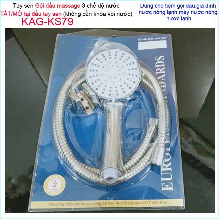 vòi sen gội đầu massge KAG-KS79-tắt mở trên vòi; tay sen + dây sen tắm, vòi hoa sen Roto KAG-KS79Chất liệu: nhựa cao cấp, mạ lớp Chrome sáng bóng, vòi 2 chế độ: phun mưa, phun tia.