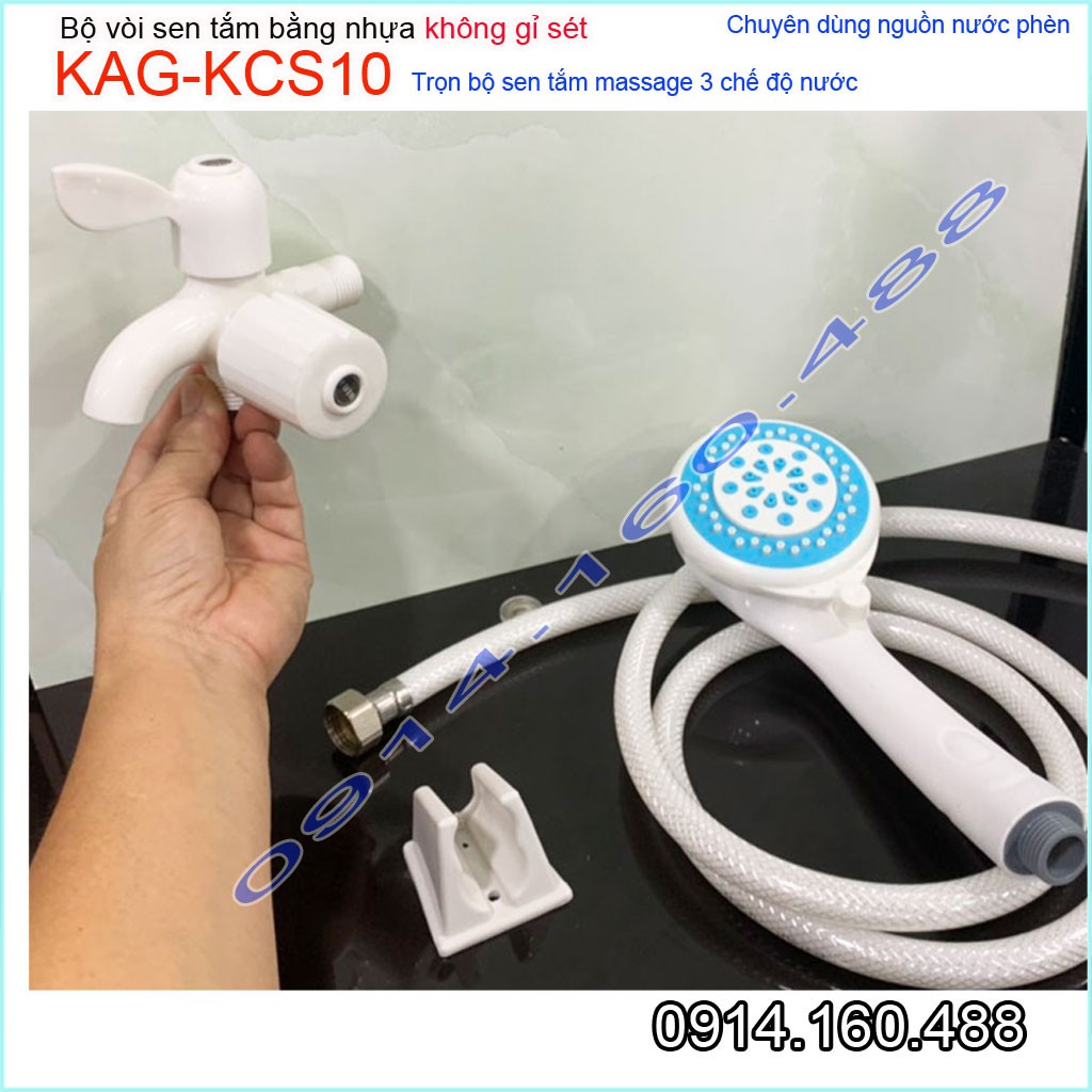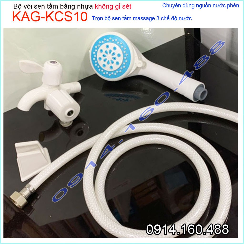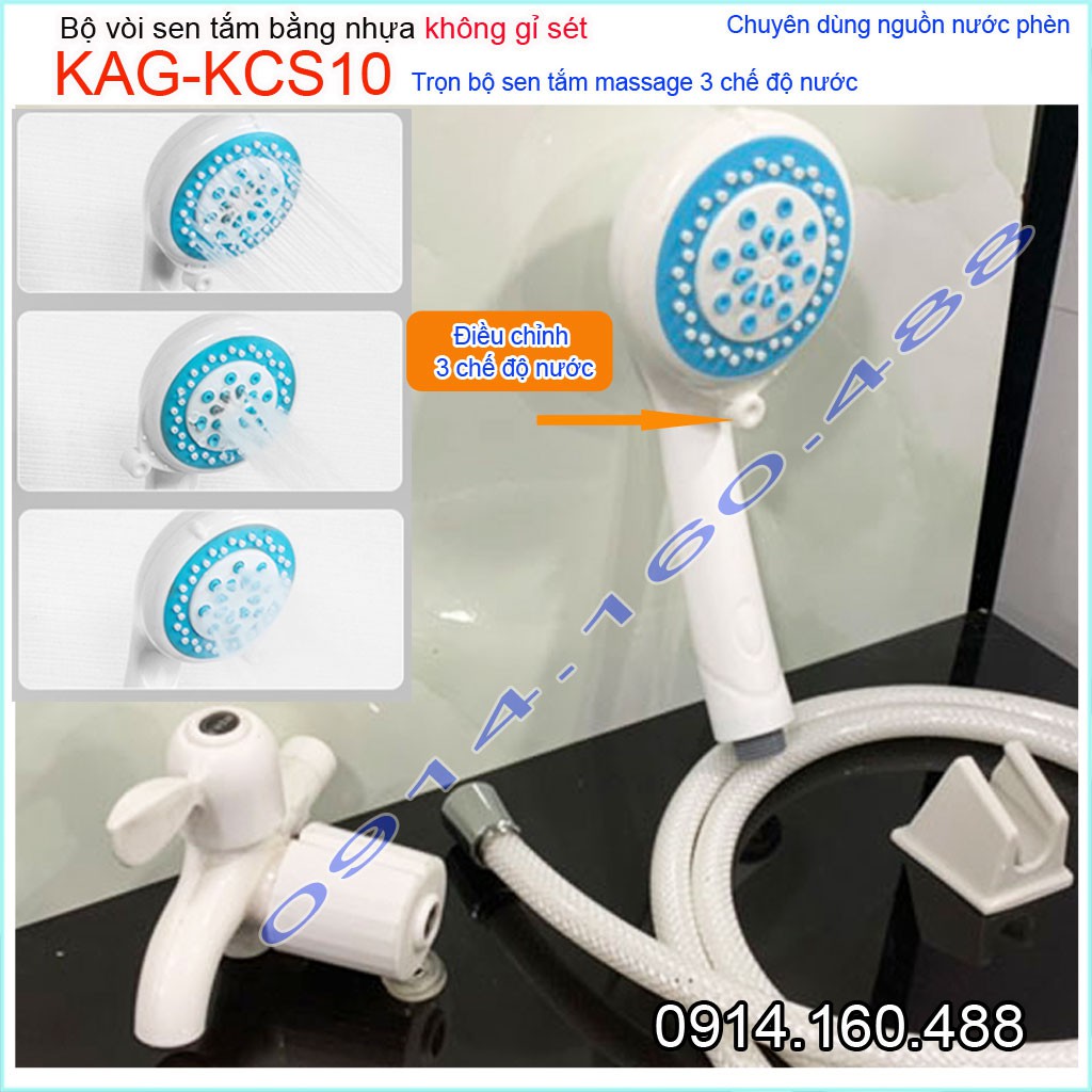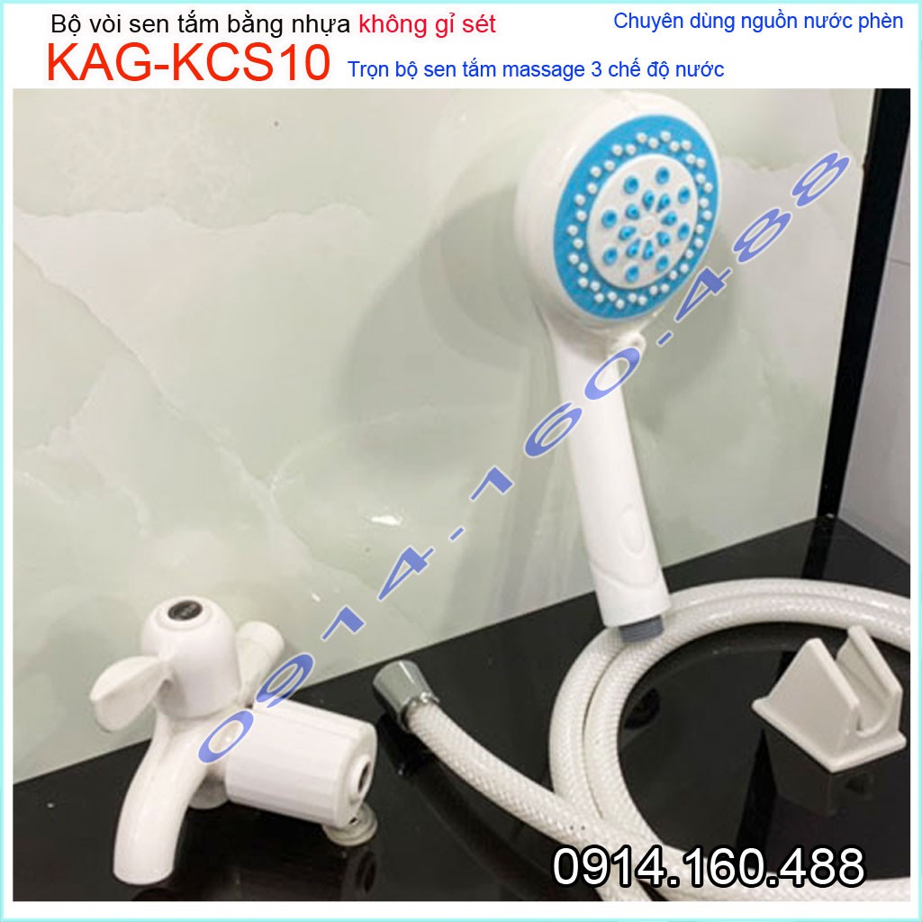 Vòi sen lạnh KAG-KCS10 nhựa Shower head, trọn bộ sen lạnh nhựa 100% dùng vùng nước phèn không gỉ séc tia phun nước mạnh