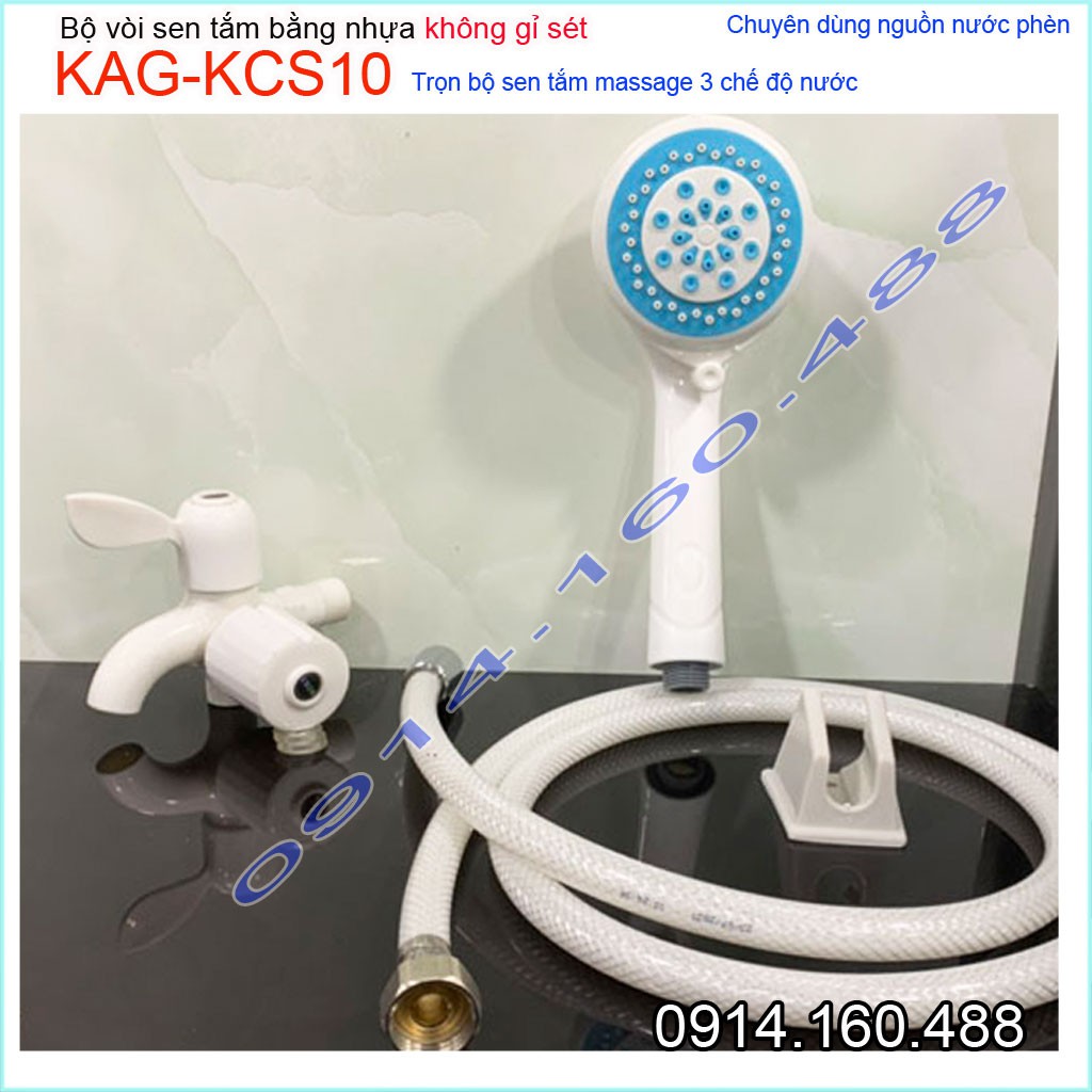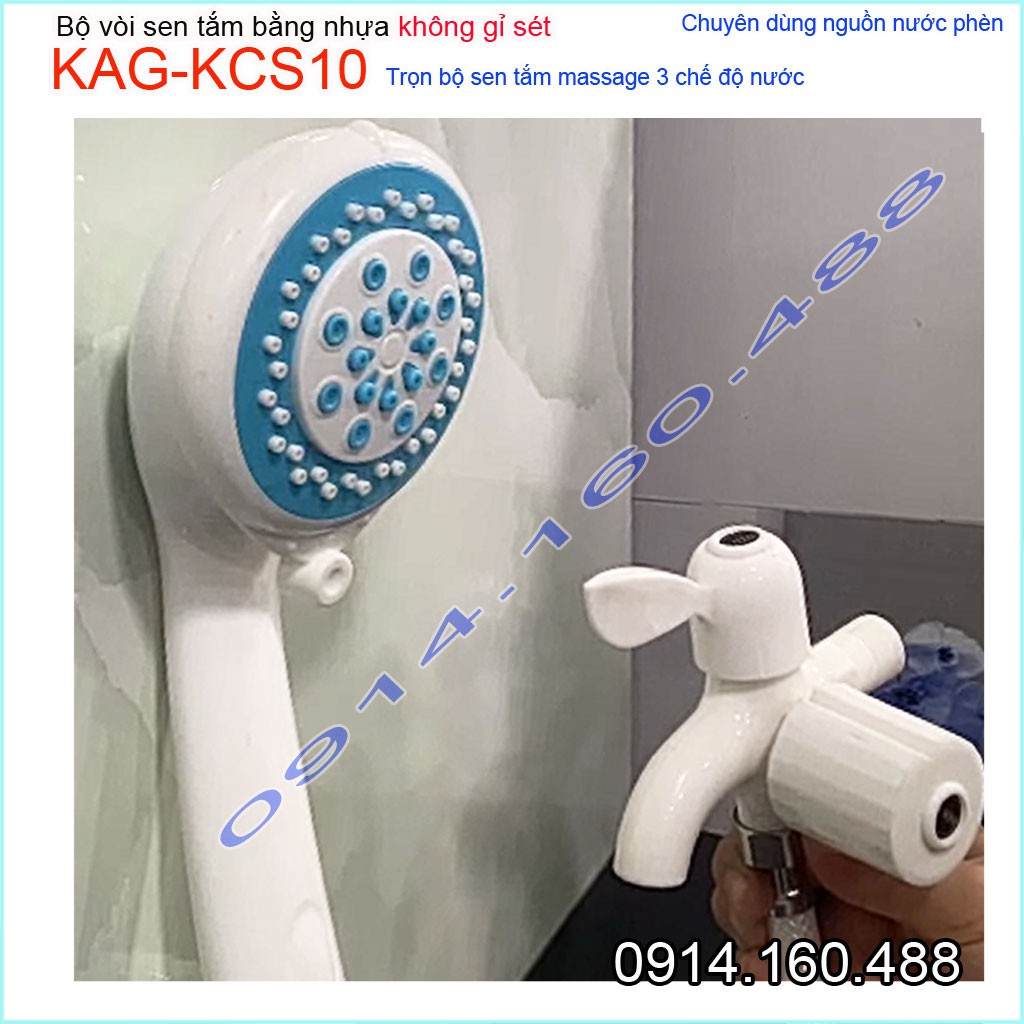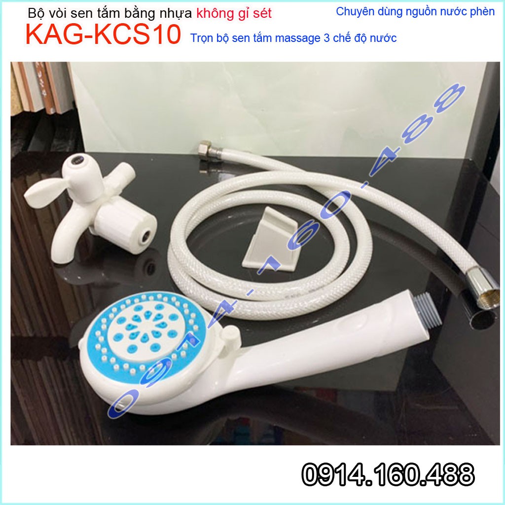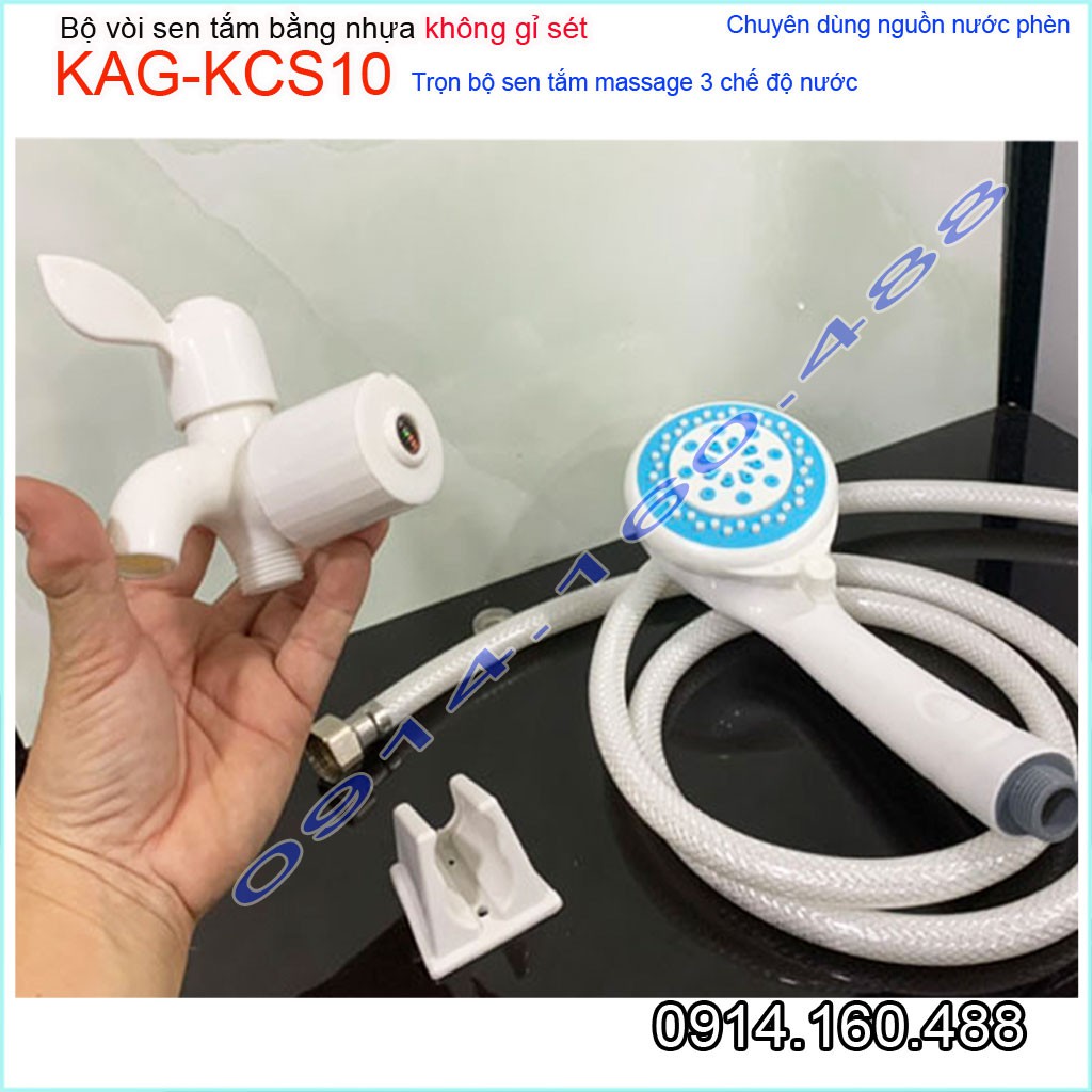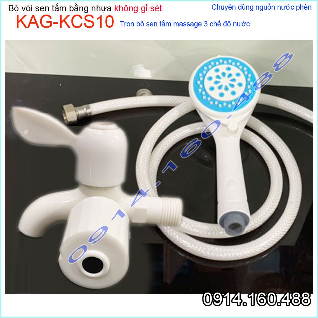 Vòi sen lạnh KAG-KCS10 nhựa Shower head, trọn bộ sen lạnh nhựa 100% dùng vùng nước phèn không gỉ séc tia phun nước mạnh