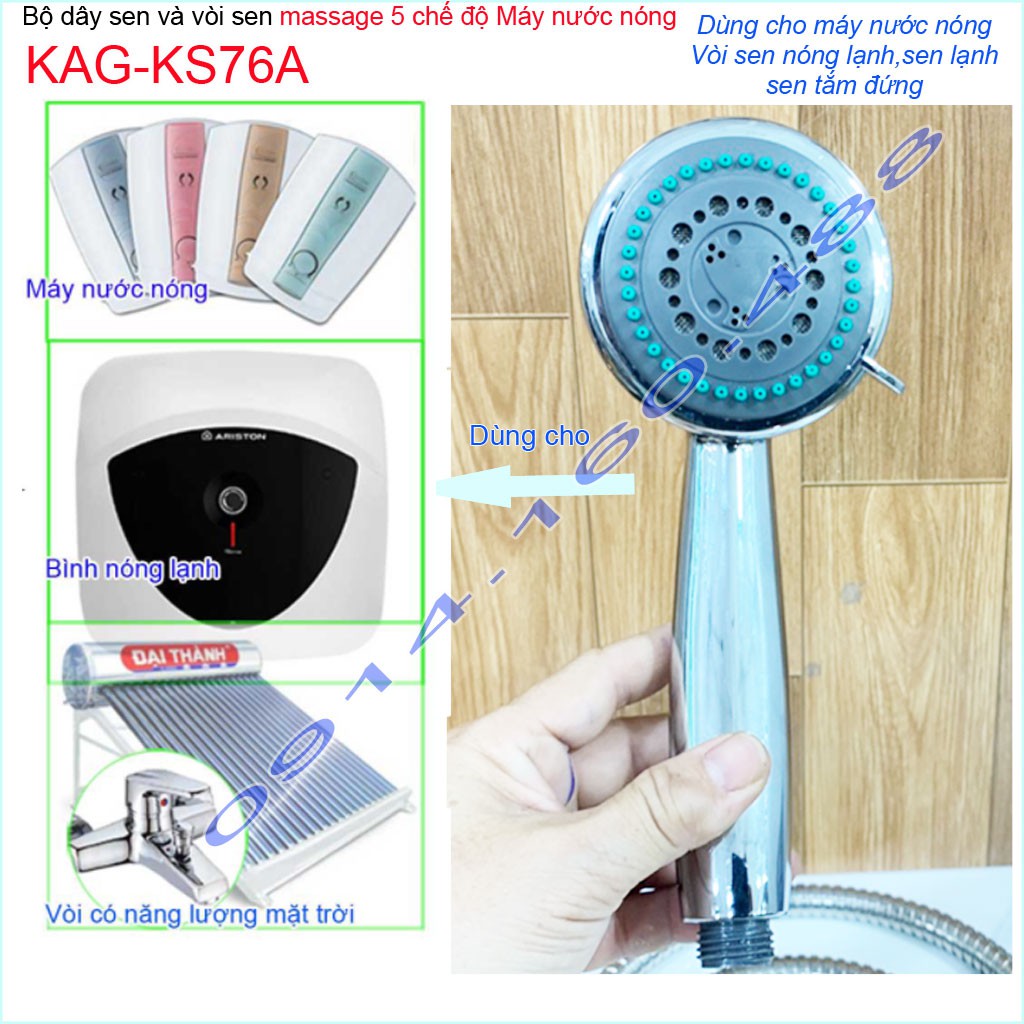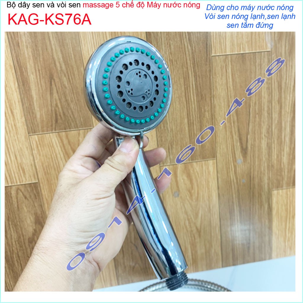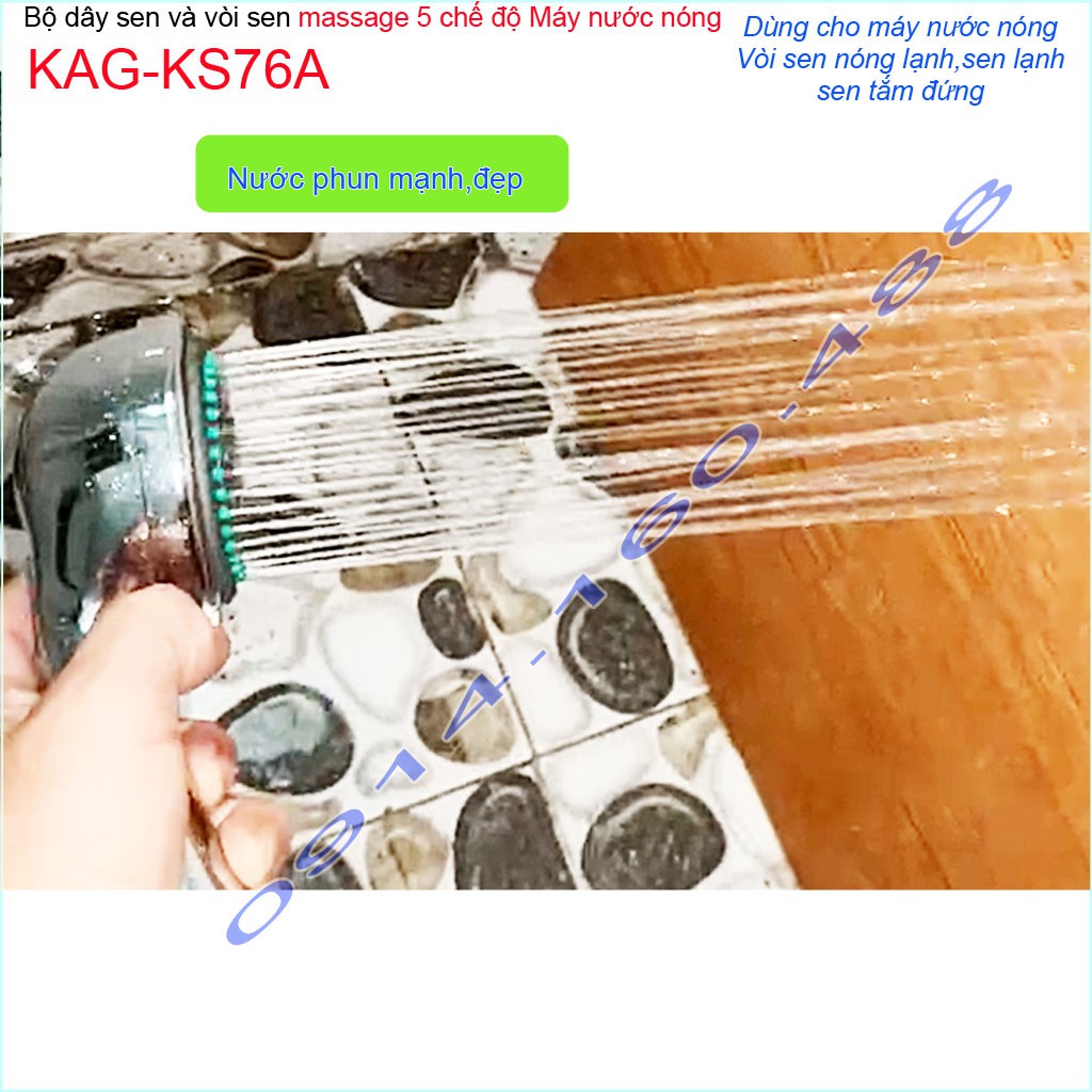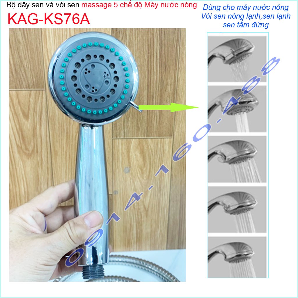 vòi sen máy nước nóng trực tiếp KAG-KS76A, vòi hoa sen chuyên dùng cho máy nước nóng 5 chế độ tia nước mạnh Best sales shower water heater 1 bát sen + 1 dây senChất liệu: Nhựa ABS cao cấp chịu nhiệt, độ bền cao bền, không bị vể vỡ do quá trình rơi-đập, không bị ô xy hóa trong quá trình sử dụng