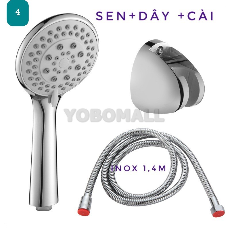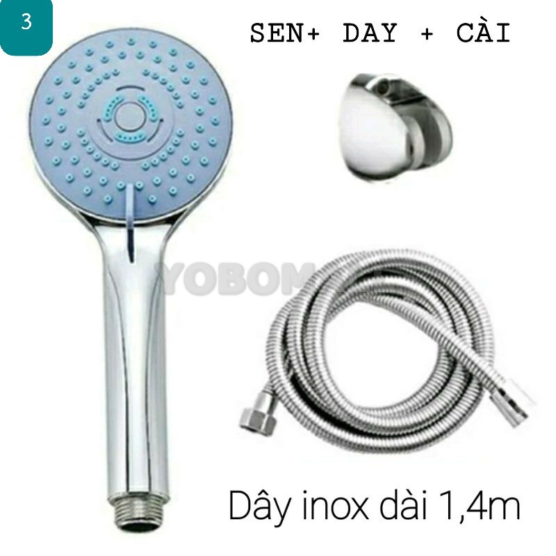 + Cài sen + Dây dẫn nước inox 304 không gỉ sét, 2 đầu dây là chất liệu đồng thau, dây dài 1,4m thoải mái khi sử dụng.