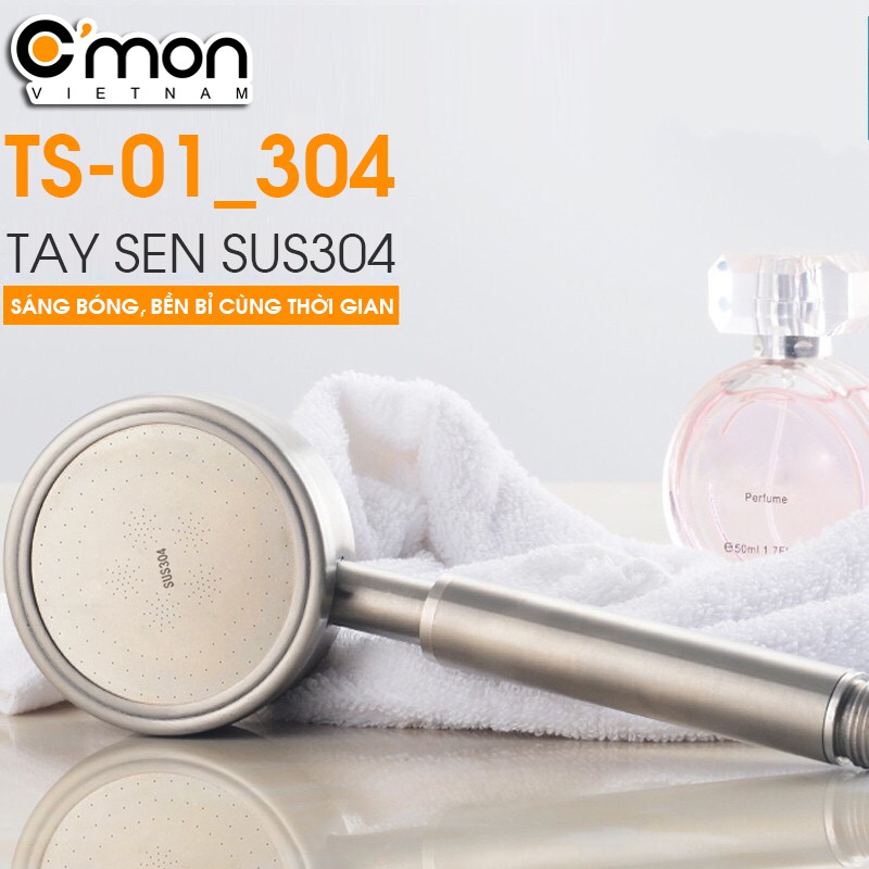 Bộ vòi sen siêu tăng áp 400% C'MON TS-01 + dây sen inox + cài sen (bạc)