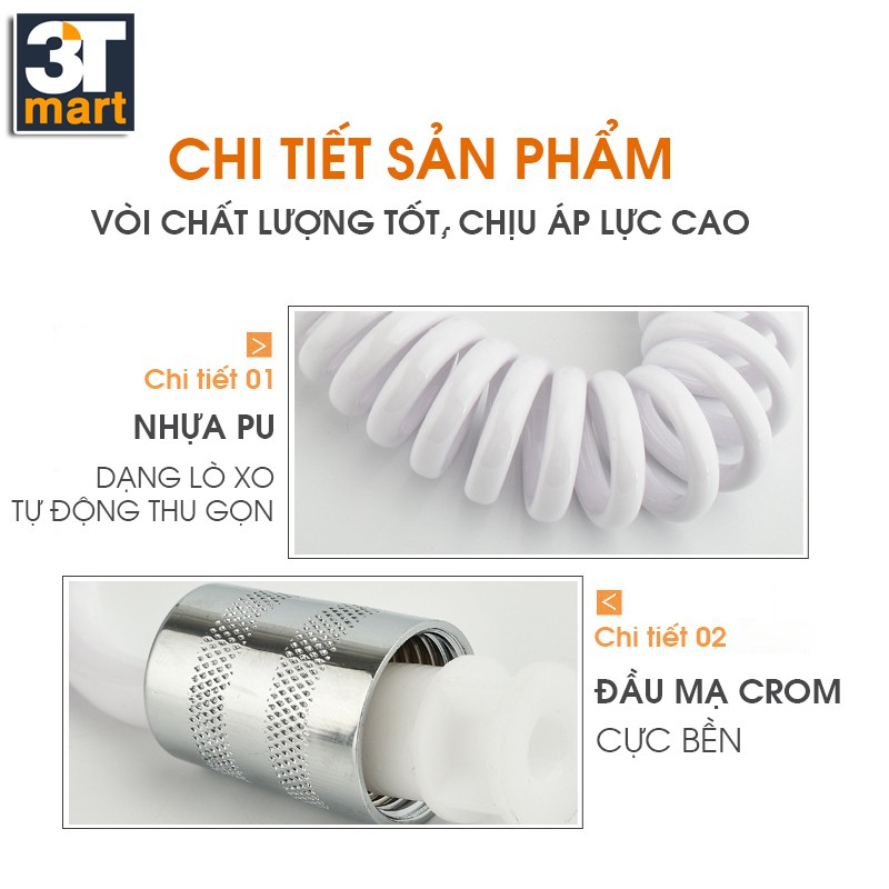 Bao gồm: 1 tay sen, 1 dây sen PU xoắn 1.5m (tự thu gọn)