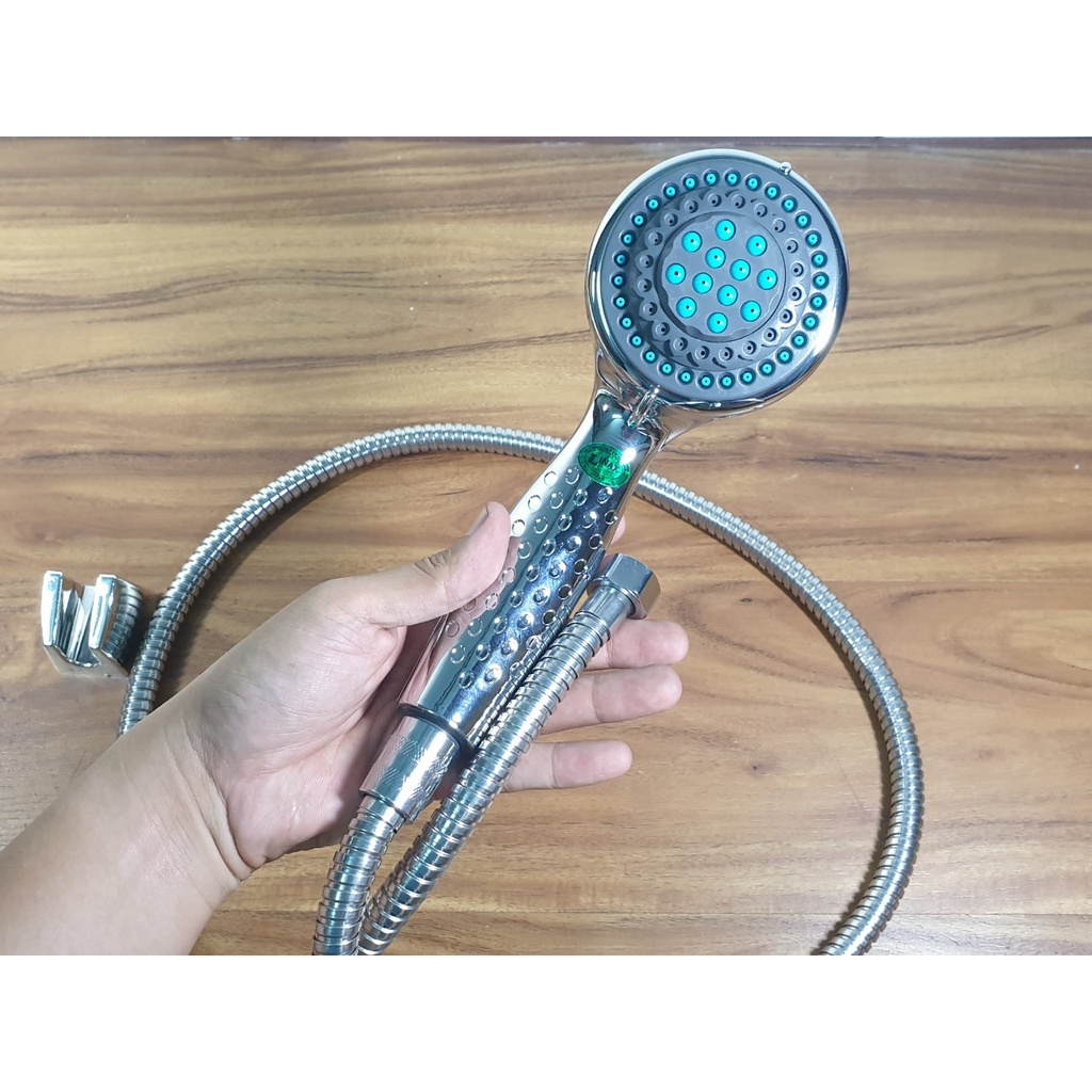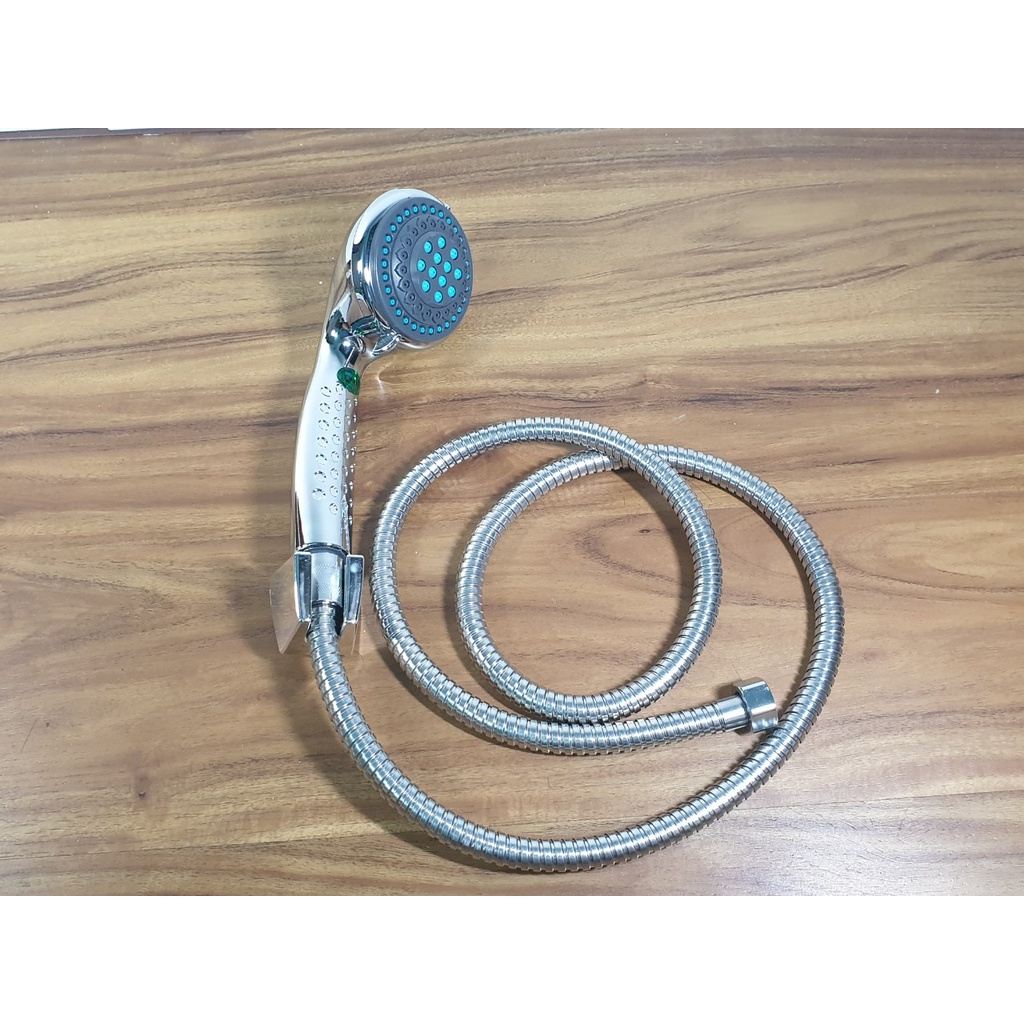 -Bộ sản phẩm gồm: dây sen inox chuẩn, không bị xoắn, dài 1,5m, đế để gài sen bóng mạ crome, tay sen tắm bằng nhựa ABS cao cấp mạ bóng crome sáng bóng nhìn mới, rất bền