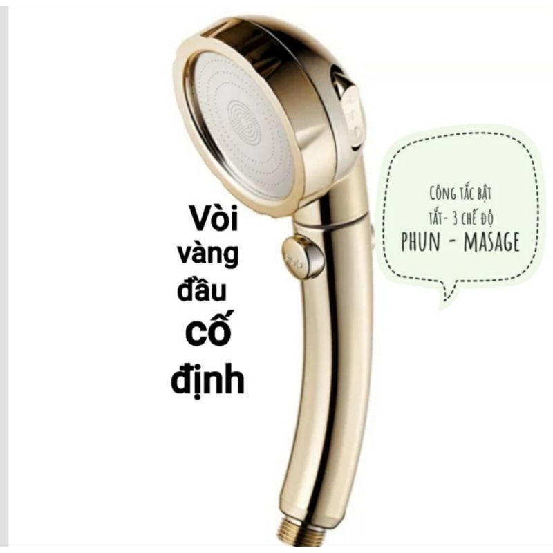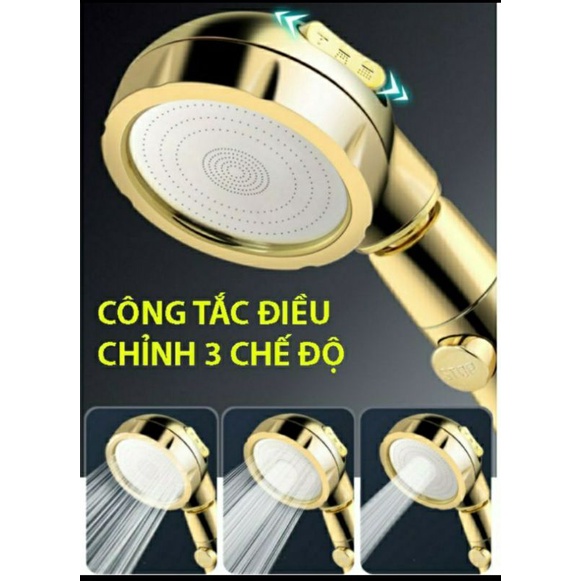 Vòi hoa sen tăng áp cao cấp 3 chế độ nước - tiết kiệm nướcVòi hoa sen được sản suất trên dây chuyền hiện đại với 9 lớp sơn phủ- thiết kế 3 màu phiên bản Crom mạ vàng, phiên bản Inox mạ điện và phiên bản sơn trắng sứ chống chầy xước bền đẹp .