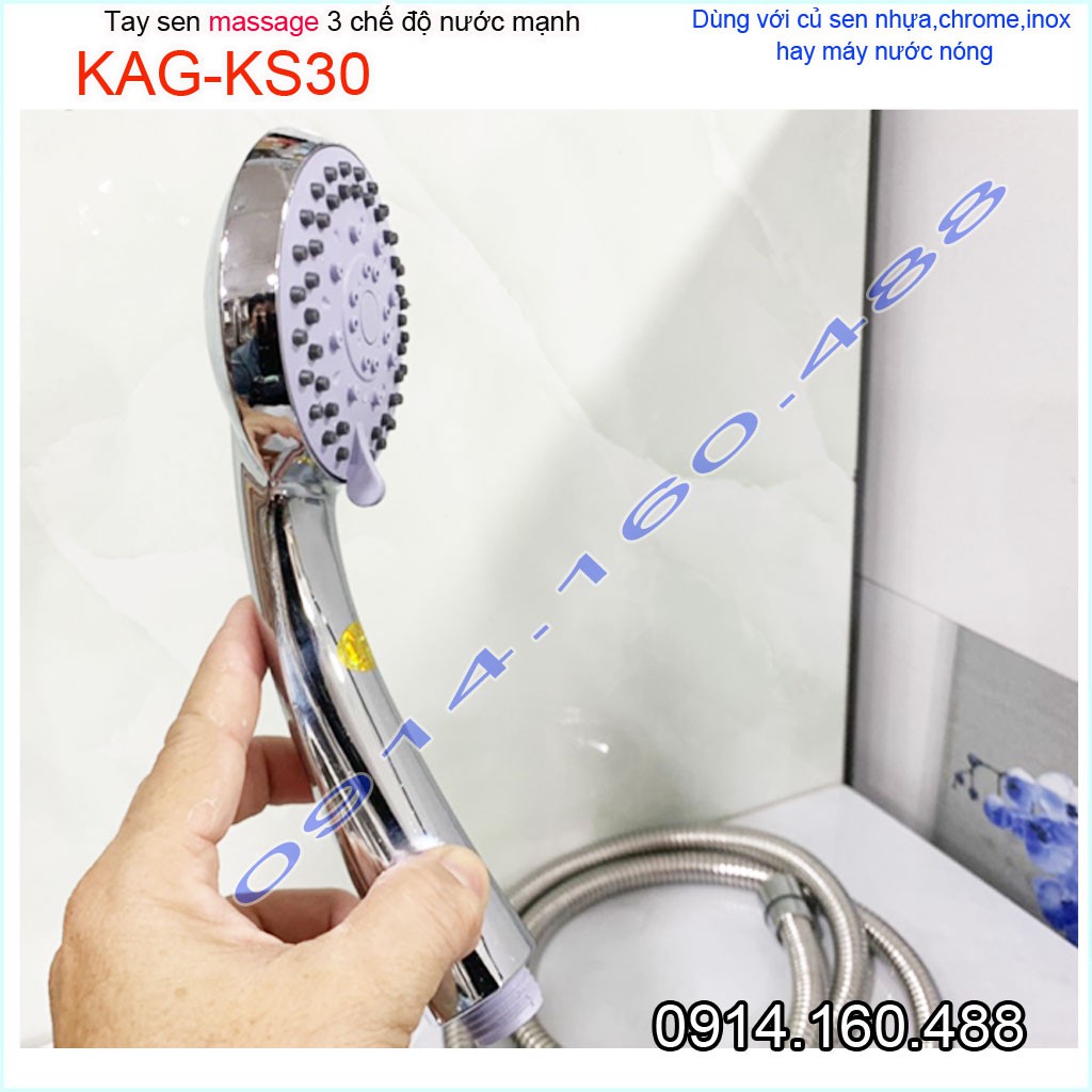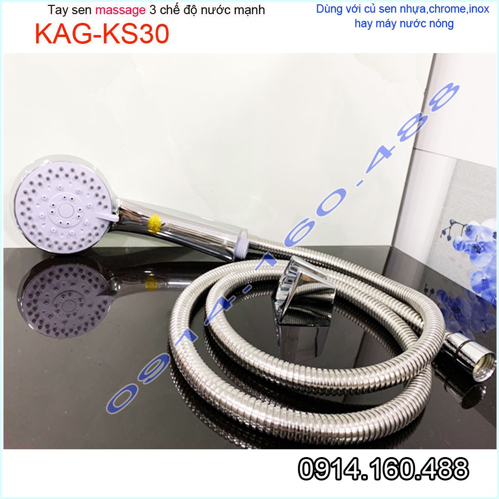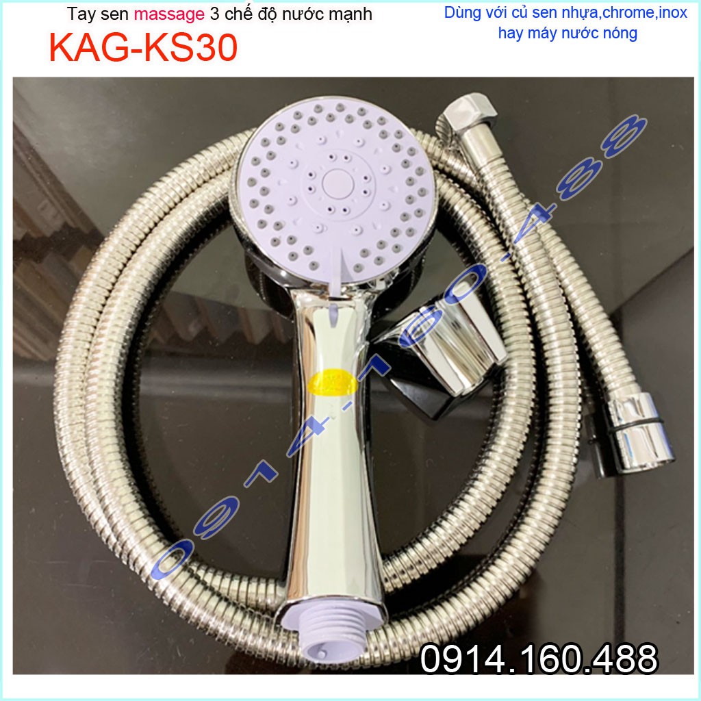 Vòi sen tắm cao cấp KAG-KS30 trọn bộ có dây, Best Sales vòi hoa sen tia nước mạnh sử dụng tốtChất liệu: nhựa cao cấp, mạ lớp Chrome sáng bóng, vòi 3 chế độ: phun sương, phun mưa, phun tia.