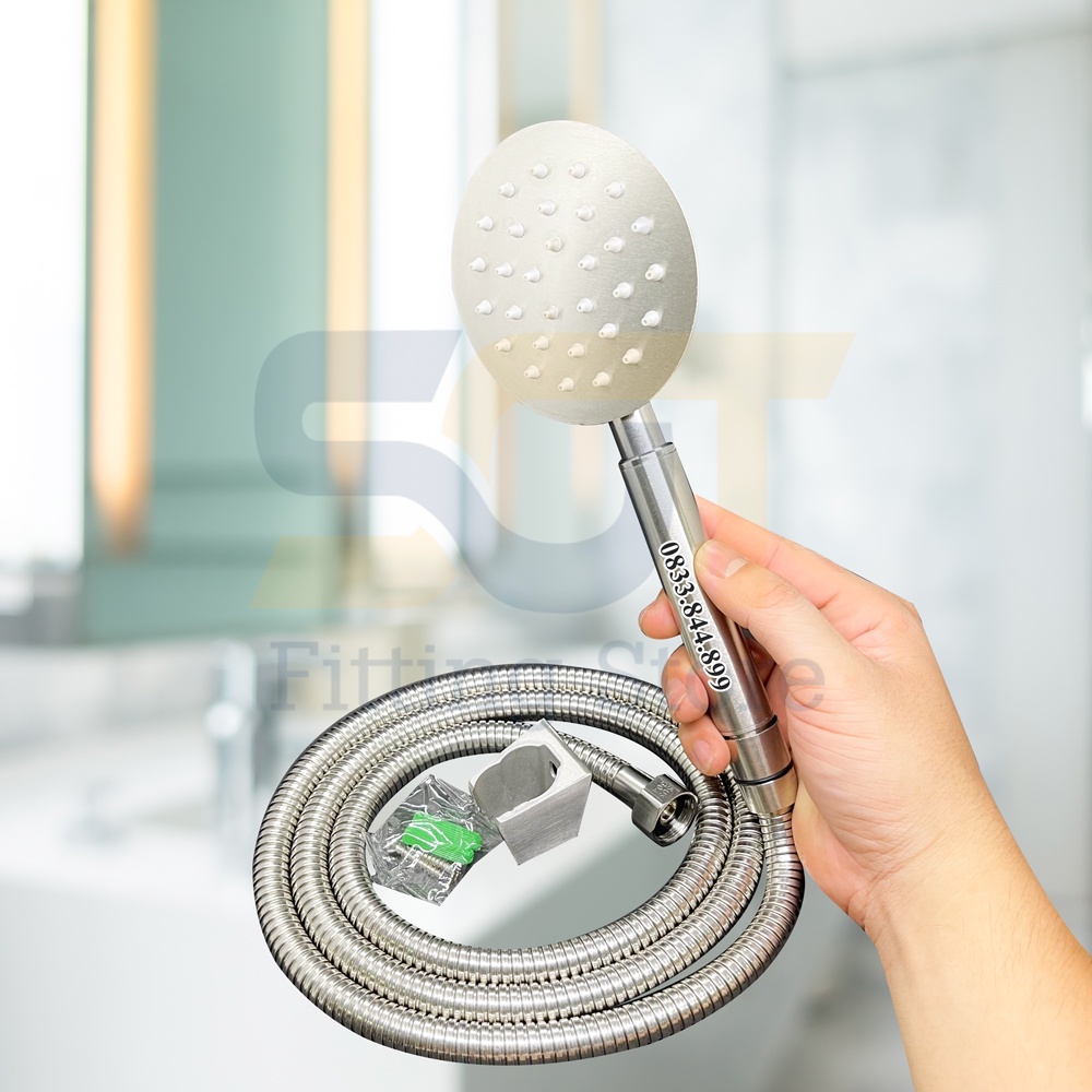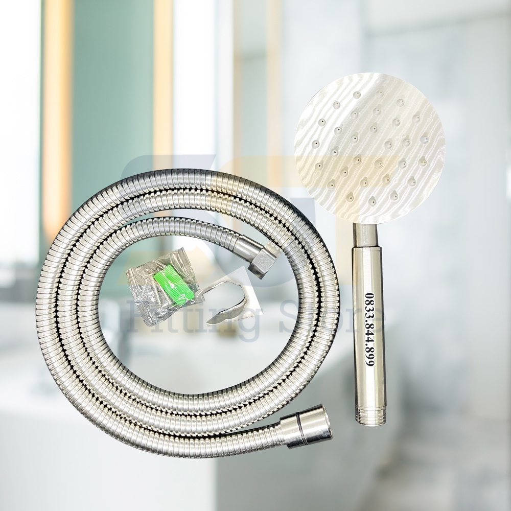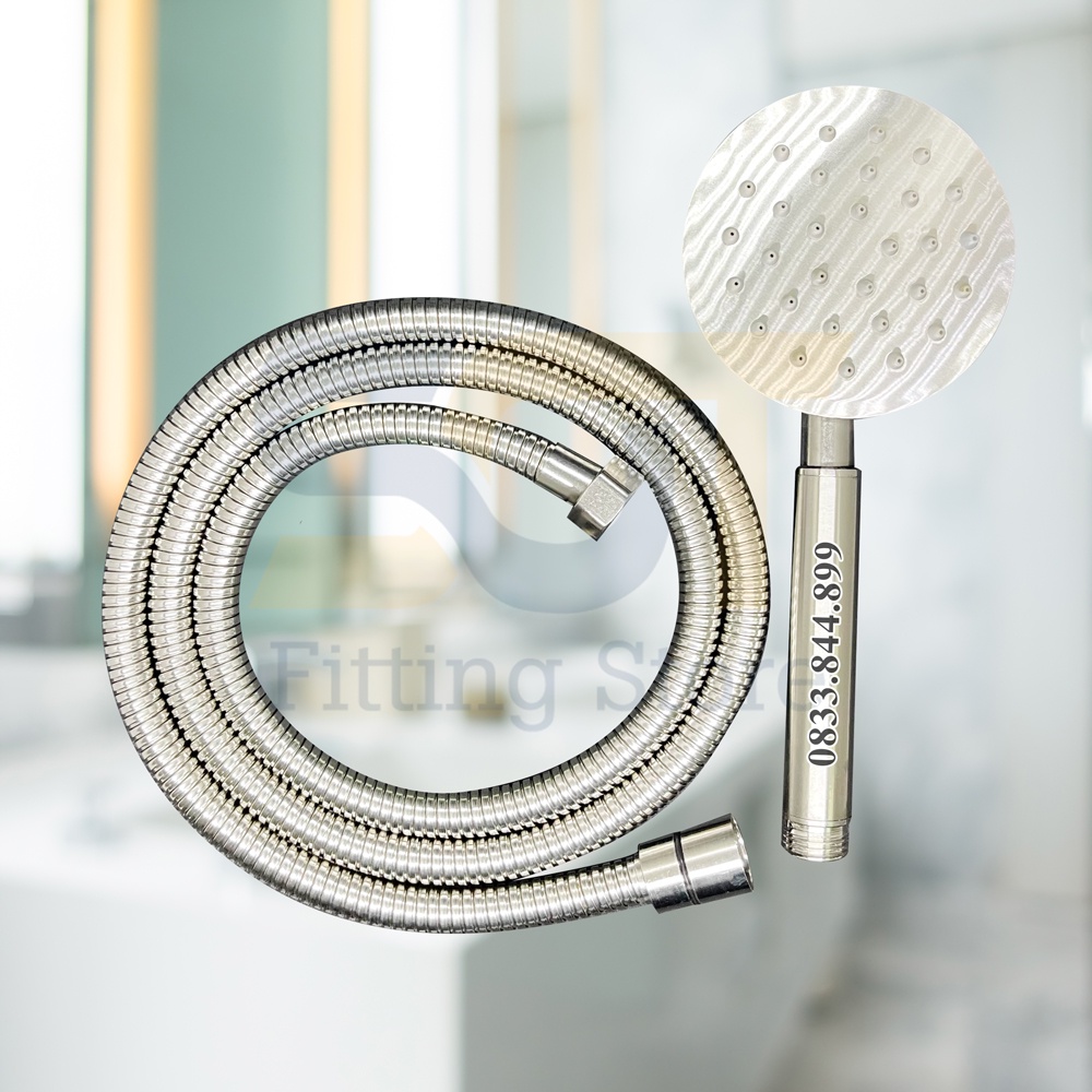 [SUS304] Vòi sen tắm vòi hoa sen inox SUS304 tăng áp không rỉ siêu bền tay TRÒN - Dây sen inox 1.5m