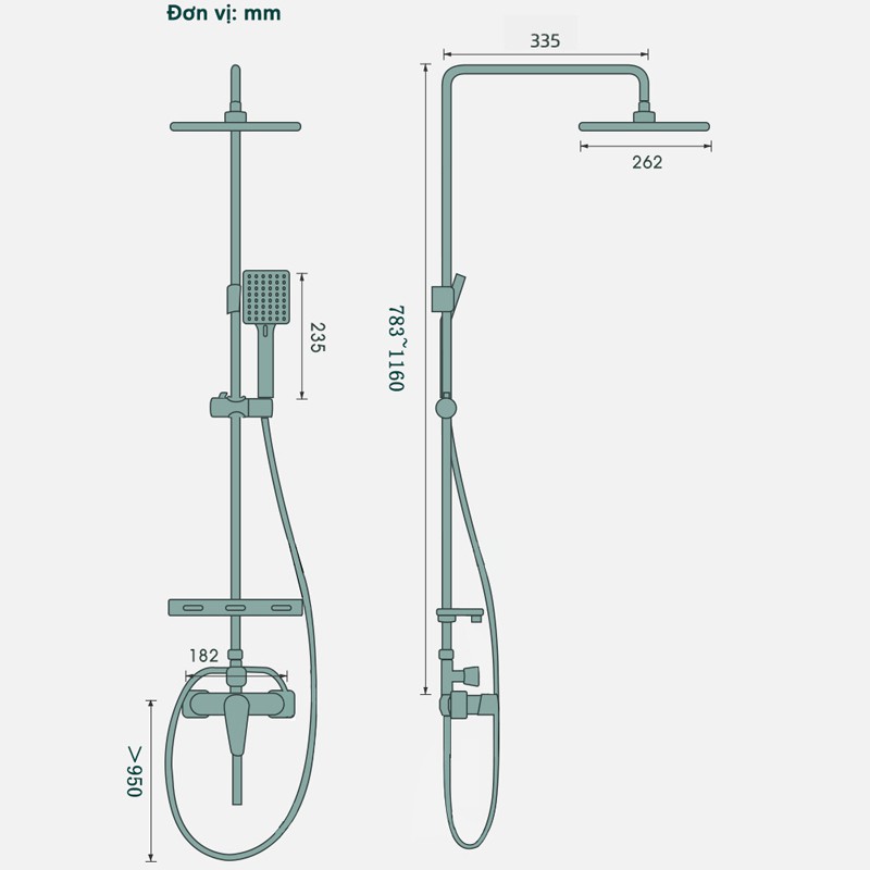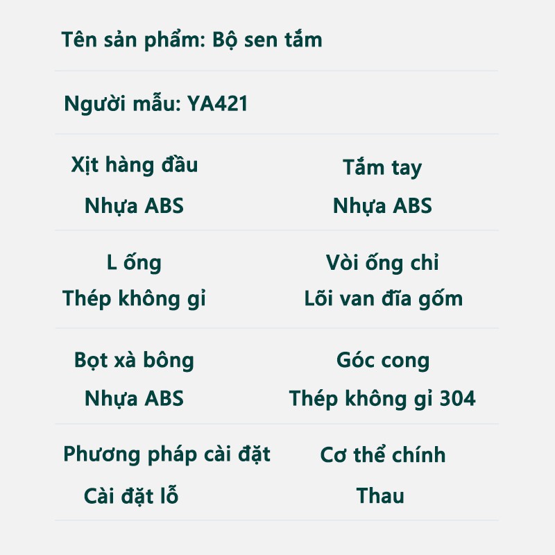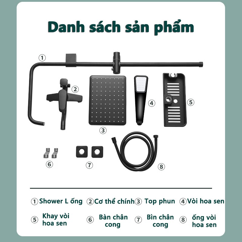 Bộ sản phẩm gồm: 1 củ sen; 1 dây dẫn nước; 2 tay sen; 1 bát sen; 1 ống đứng & các đầu ốc đi kèm