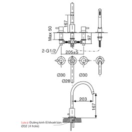 - Áp lực nước : 0.05 MPa ~ 0.75 MPa