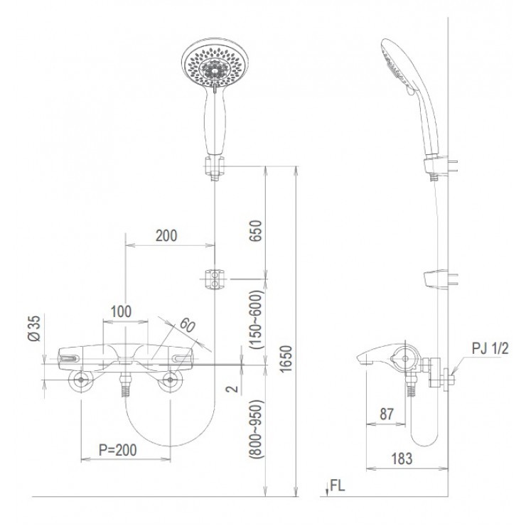 - Áp lực nước : 0.05 MPa ~ 0.75 MPa