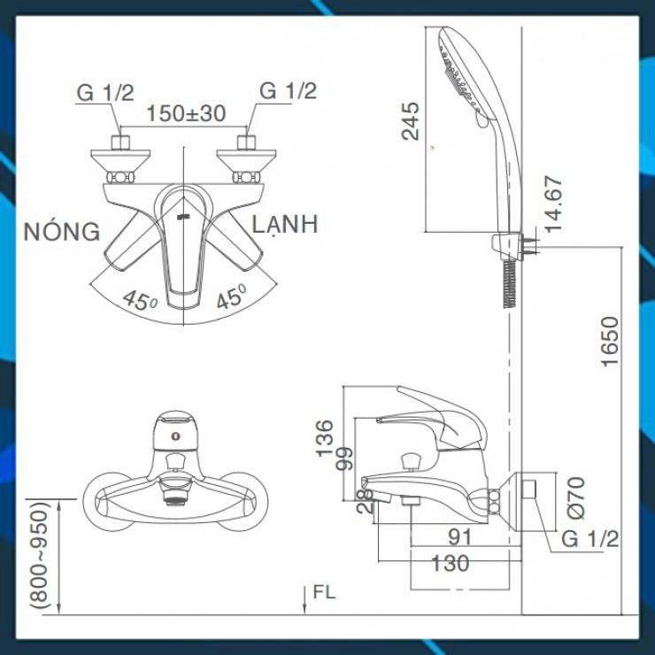 - Áp lực nước : 0.05 MPa ~ 0.75 MPa
