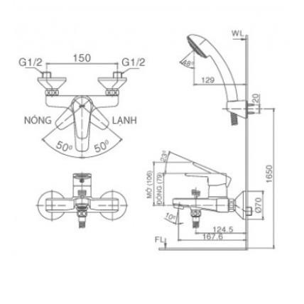 Vòi sen tắm nóng lạnh INAX BFV-1203S-4C Tay sen mạ đến từ thương hiệu thiết bị vệ sinh INAX- Áp lực nước : 0.05 MPa ~ 0.75 MPa