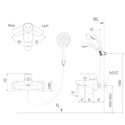- Áp lực nước : 0.05 MPa ~ 0.75 MPa