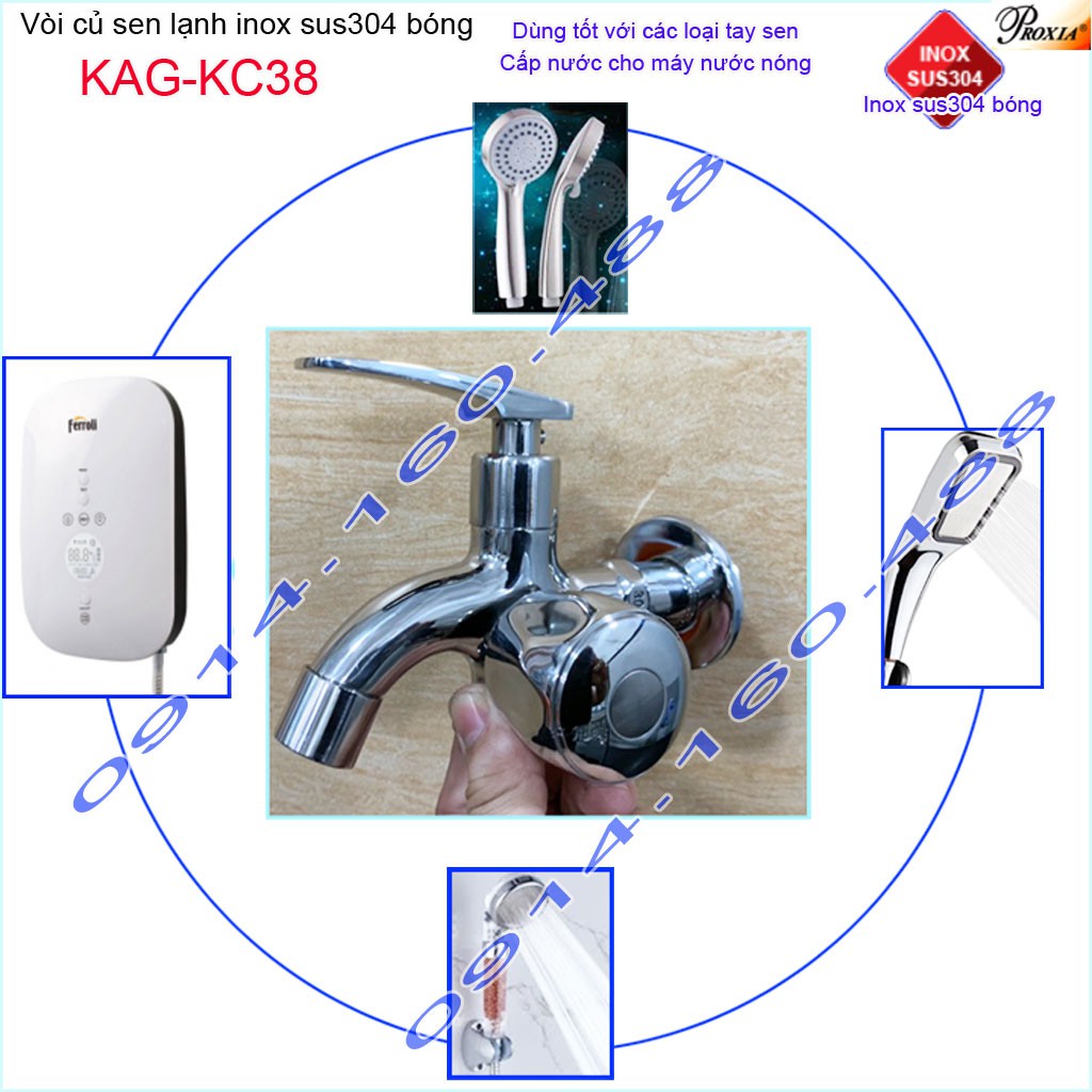Vòi sen tắm Inox 304 KAG-KC38, Củ sen tắm lạnh Proxia cao cấp Inox 304 bóngCông nghệ sản xuất : Proxia sản xuất theo công nghệ Thái Lan- Chất liệu Inox 304 bóng sử dụng siêu bền dùng cho vùng nước phèn- nước biển