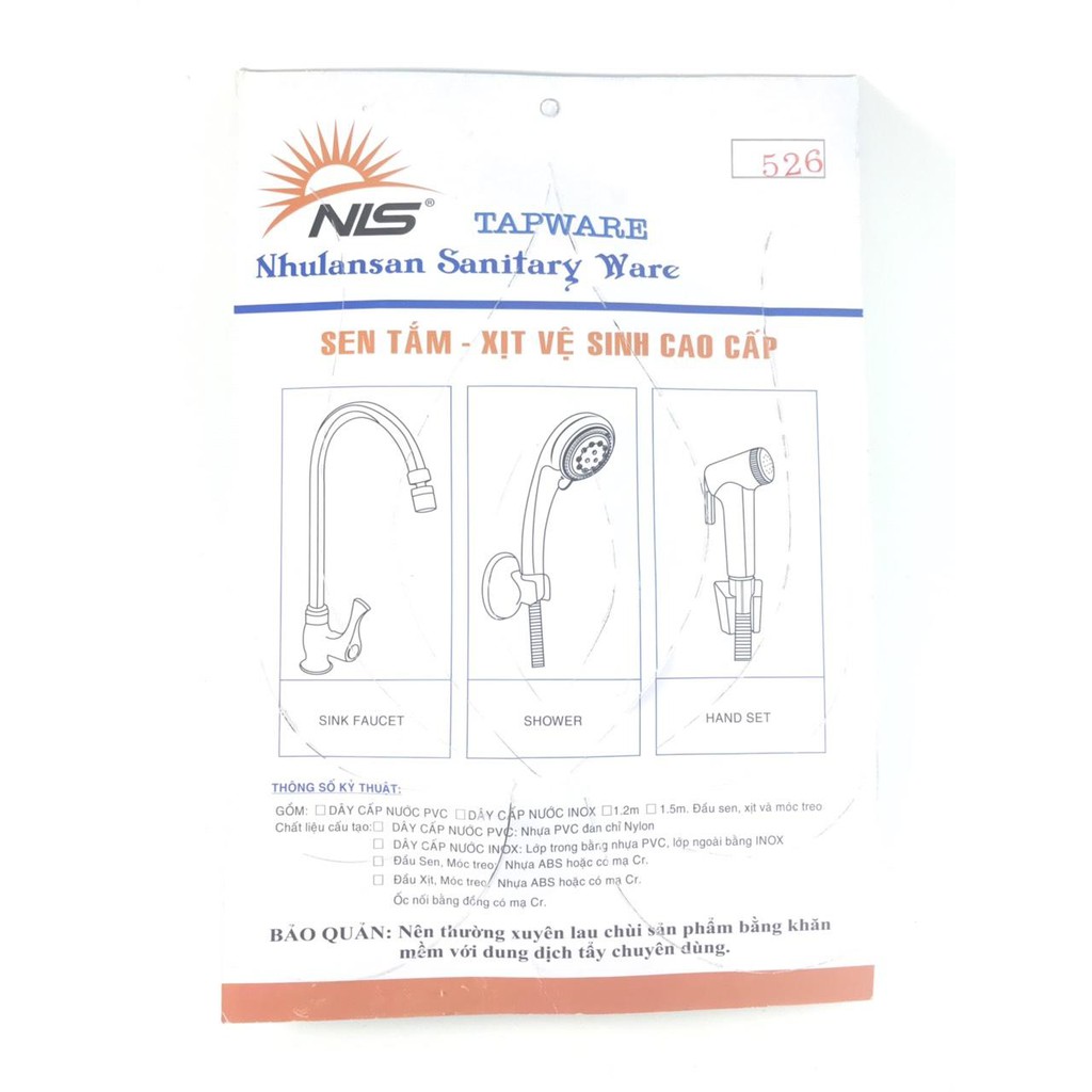 Nhà Cửa & Đời Sống > Đồ dùng phòng tắm > Thiết bị nhà tắm và nhà vệ sinh || Bộ vòi sen tắm Như Lan San 526 kèm dây dẫn và đế cài - Bộ sen tăng áp chùm phun rộng 124 lỗ ( Made in Việt Nam )So sánh giá ×