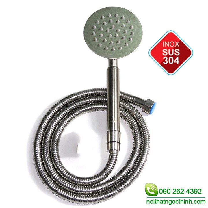 Vòi sen tắm STS-02 - Vòi hoa sen inox 304 không rỉ siêu bền mặt phun TRÒN - Dây sen tắm inox 1.5m
