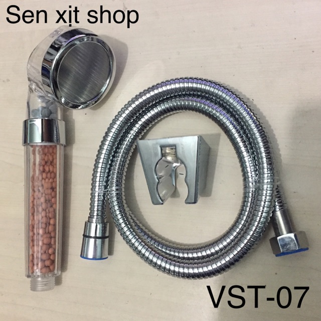 Bộ vòi sen tắm tăng áp : tay vòi sen, dây sen, cài sen-Tay vòi sen bằng nhựa ABS rất bền, mặt vòi sen nhỏ gọn nên phun nước ra rất đẹp, bên trong có các hạt nano và than hoạt tính vừa để tạo áp lực nước vừa để lọc bớt các tạp chất của nước an toàn cho người sử dụng