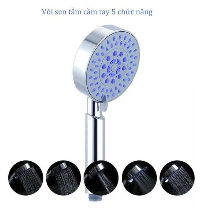 Sản phẩm bao gồm : vòi sen 5 chức năng + dây cấp nước vòi sen lõi đồng cao cấp + giá treo vòi sen
