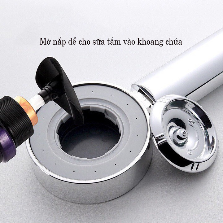Giới thiệu Vòi sen tăng áp 2 mặt [ loại to có hộc chứa sữa tắm, tinh dầu ]- Tay sen tăng áp xịt bọt- Vòi hoa sen phong cách Nhật