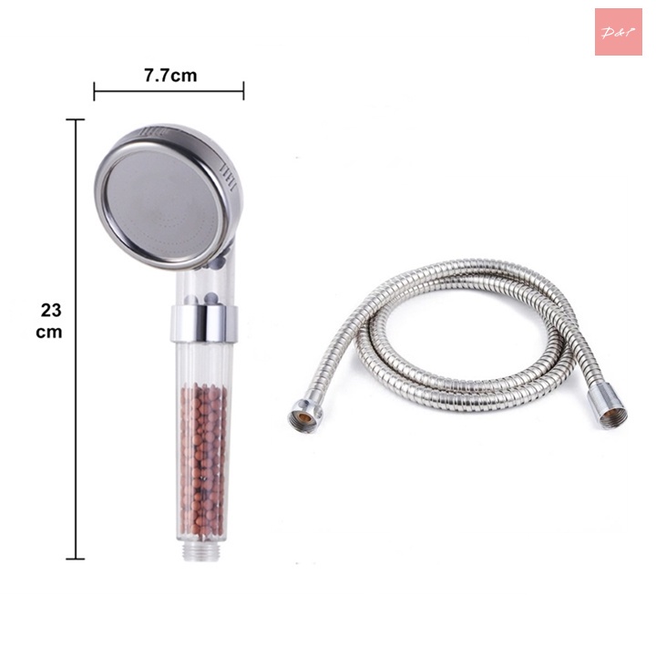 - Kích thước : dài ống 1.5m, chiều dài vòi hoa sen 220mm, đường kính 80mm