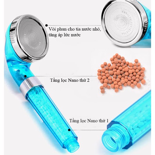 - Vòi hoa sen tăng áp có hạt lọc nano (có dây vòi) với thiết kế tiên tiến công nghệ Nano nhờ các hạt Nano (anion) giúp thanh lọc nước, diệt vi khuẩn, khử độc, làm sạch da, đẹp da..Massage tóc, kính thích da đầu cho bạn mái tóc luôn mềm mại và mượt mà. Tạo cảm giác thư thái, thoải mái cho người sử dụng.- Sản phẩm có kèm dây dẫn nước cao cấp chịu lực va đập, chắc chắn hạn chế vỡ ngay cả khi chịu lực tác động mạnh.