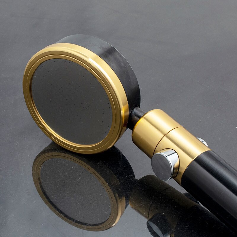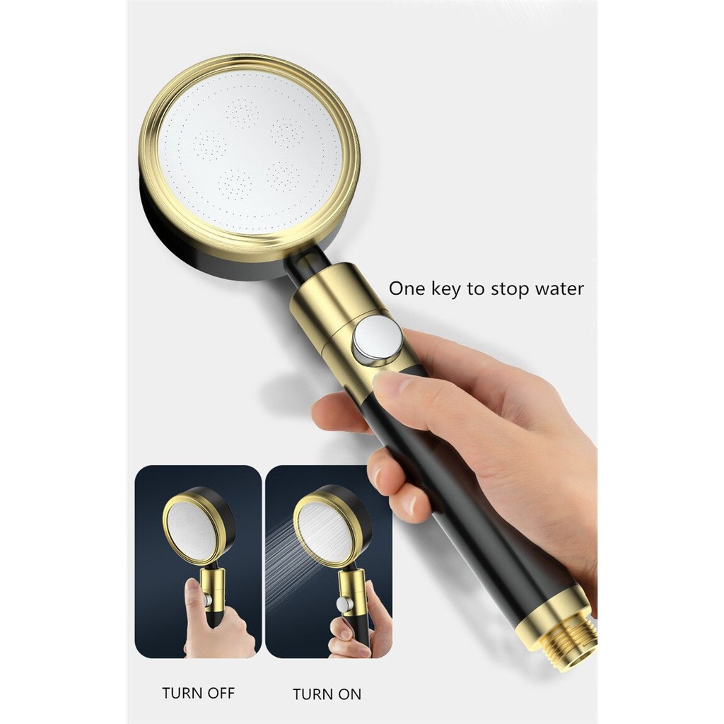 Bộ vòi sen tăng áp có nút bật tắt nước bằng hợp kim nhôm màu vàng đen chống oxi hóa cao cấp ( cài dán Nhôm) - QM.TS019B3