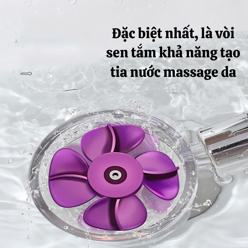 - Đầu ra với hàng trăm lỗ nhỏ li ti làm tăng áp lực nước giúp tia nước ra mạnh hơn và phun xa hơn so với các tay sen tắm thông thường có tác dụng Massage cơ thể.