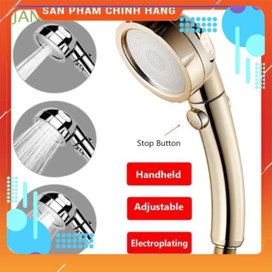 Vòi Sen Tăng áp Có Nút Khóa Nước, 3 chế độ Phun, Xoay 360 độ Hàng Xịn ➖ Vàng Gold