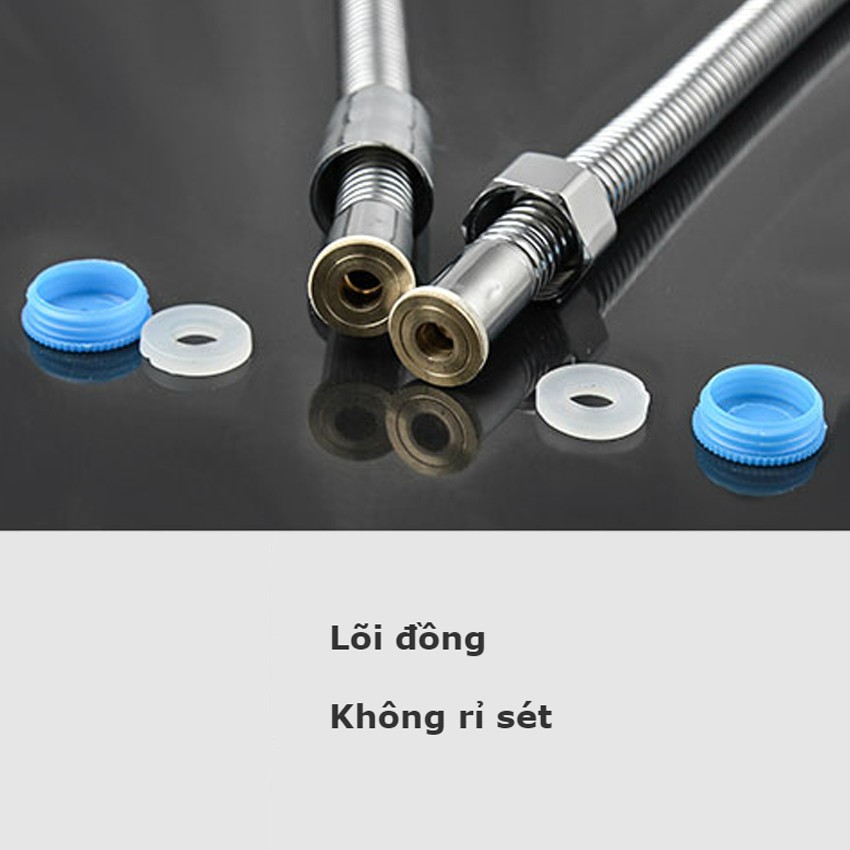 🔹 Đầu dây có ốc, kích thước chuẩn phù hợp với tất cả các loại sen thông thường. Mỗi đầu dây dẫn đều có sẵn gioăng đệm cao su giúp bạn dễ dàng lắp đặt với các củ sen & tay sen.
