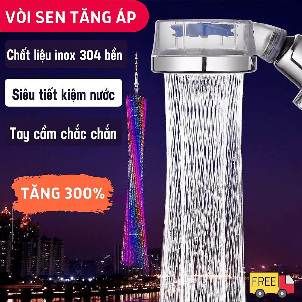 [FREE SHIP] Vòi sen tăng áp, Tay sen tắm có cánh quạt cao cấp tăng 300% áp lực, tiết kiệm 30% nước