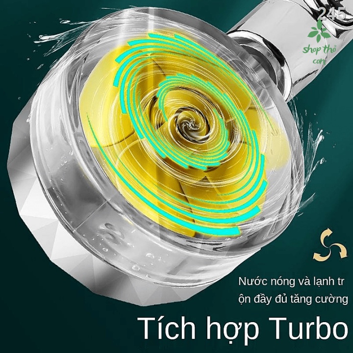 Vòi sen tăng áp, Tay sen tắm có cánh quạt cao cấp tăng 300% áp lực, tiết kiệm 30% nước -THO4