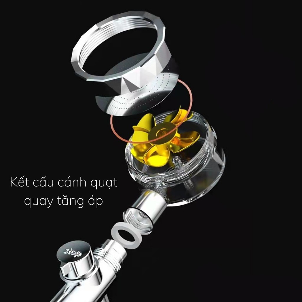 Bộ vòi sen tăng áp tích hợp công nghệ cánh quạt giúp tiếp kiệm nước thiết kế cổ xoay linh hoạt-thông minh