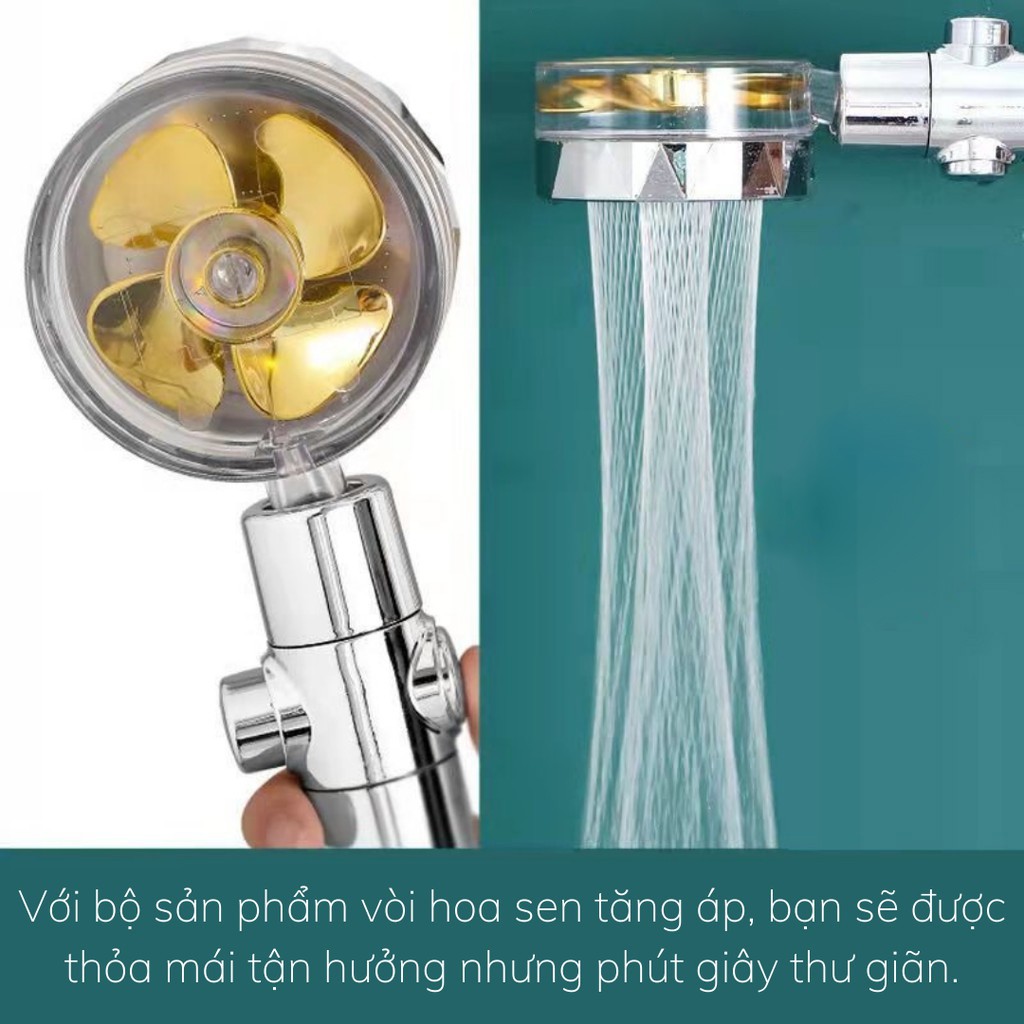 Sau một ngày làm việc, vận động, học tập vất vả,... bạn sẽ được tận hưởng những phút giây cực kỳ thư giản & thỏa mái để loại bỏ tất cả những mệt mỏi, phiền muộn của ngày dài với bộ sản phẩm VÒI HOA SEN TĂNG ÁP với công nghệ cánh quạt cao cấp cho phòng tắm nhà bạn!Chi tiết sản phẩm VÒI HOA SEN TĂNG ÁP: