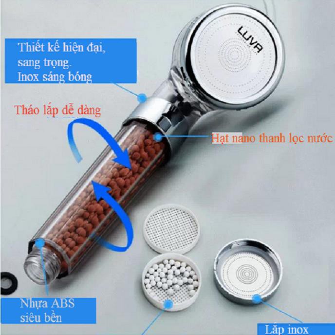 Vòi hoa sen tăng áp, lọc nano thế hệ mới (kèm dây)