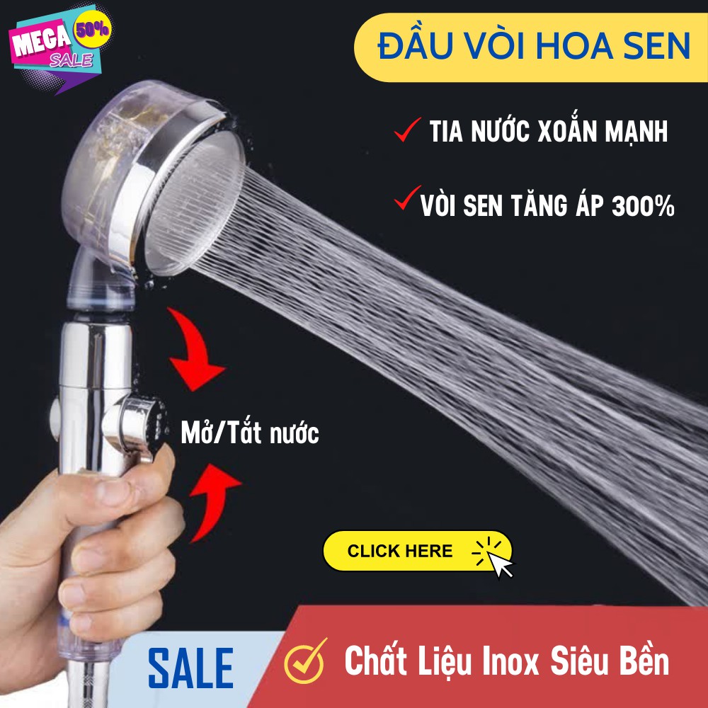 👉Mua 1 được 3 bao gồm (Vòi sen tăng áp + Lõi lọc Hàn Quốc + Tia nước xoắn mát-xa)