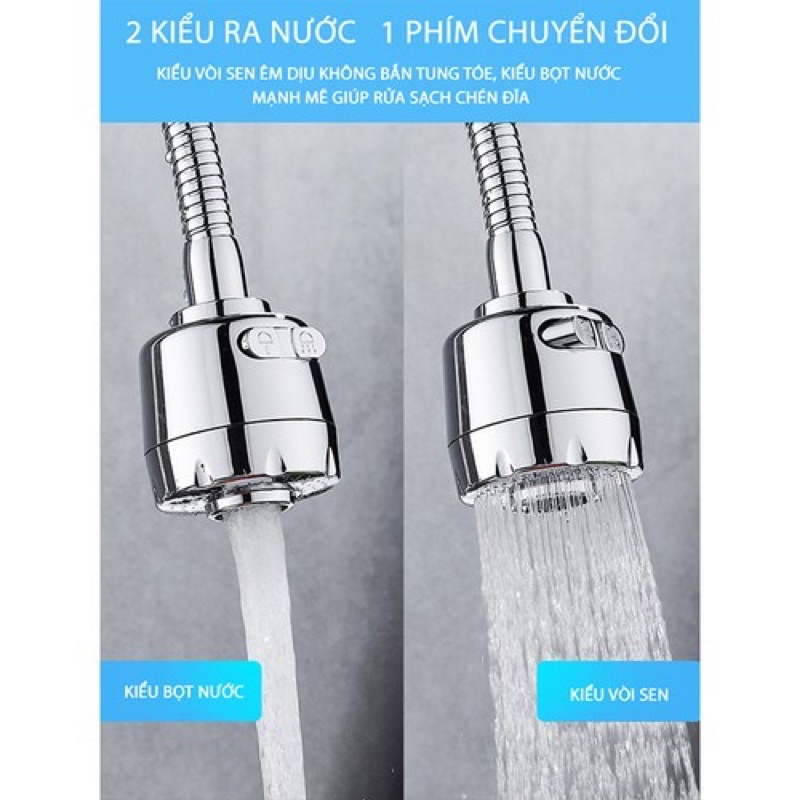 Vòi Sen Tăng Áp Đầu Vòi Nối Tăng Áp Bồn Rửa Bát Xoay 360 Độ⭐️ Đầu vòi xịt nước tăng áp cho vòi bồn rửa xoay 360 độ thiết kế dạng vòi sen dùng để điều chỉnh dòng nước ở bồn rửa giúp bạn rửa chén bán, rau củ, thực phẩm… tiện lợi dễ dàng hơn.