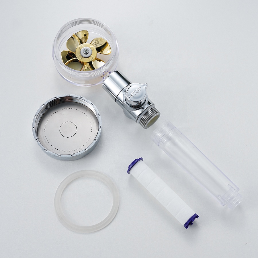 Giới thiệu Vòi sen, tay sen cánh quạt tăng áp lõi lọc bông thân nhựa trong có nút bật tắt trên thân tiện lợi - TS029