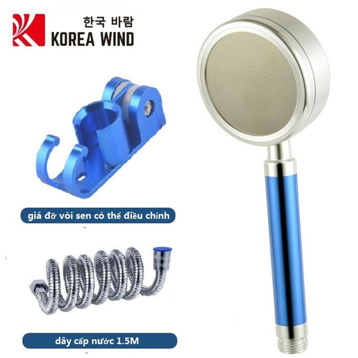 Bộ vòi hoa sen tăng áp hợp kim nhôm màu xanh 3 món , gồm vòi sen + dây cấp nước 1.5M + giá đỡ vòi sen hợp kim nhômChất liệu : Hợp kim nhôm