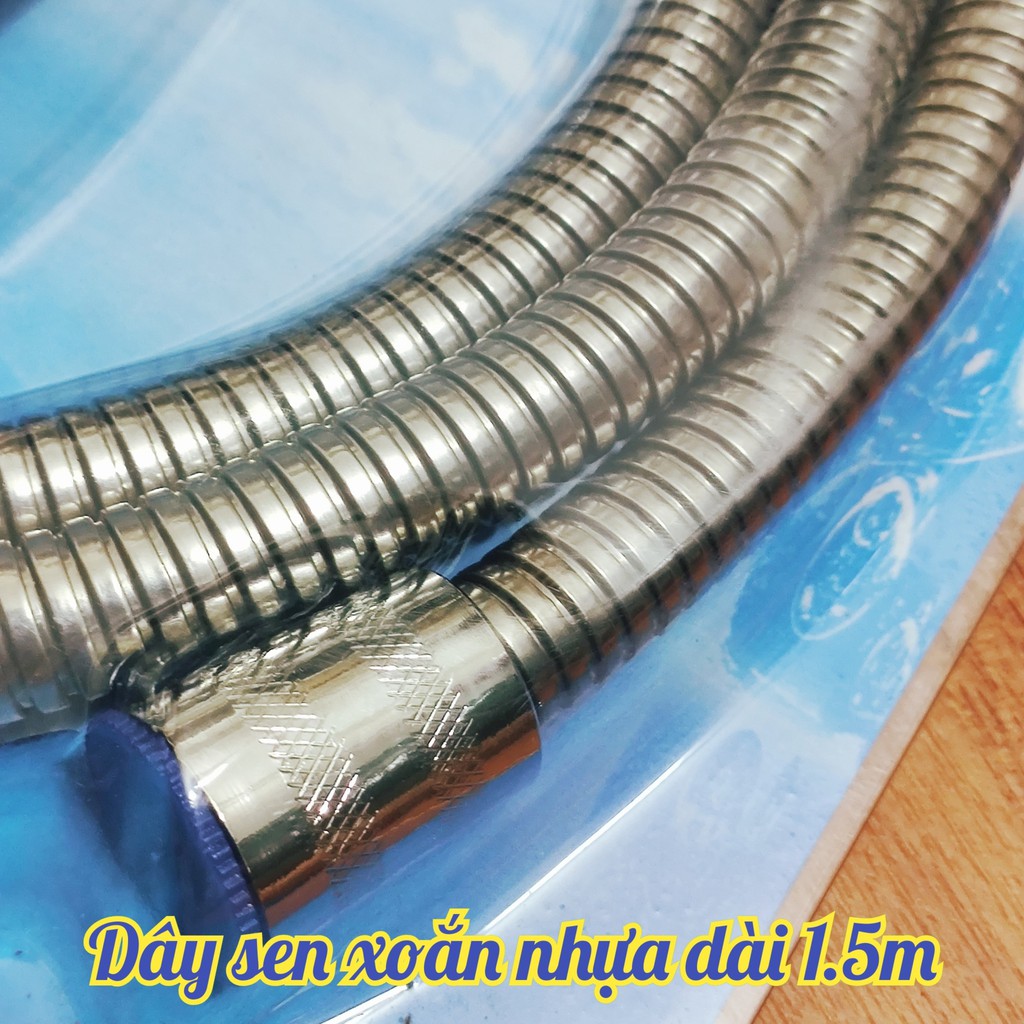Bộ vòi sen tắm tăng áp gồm có:- Dây cấp nước nhựa xoắn dài 1,5m