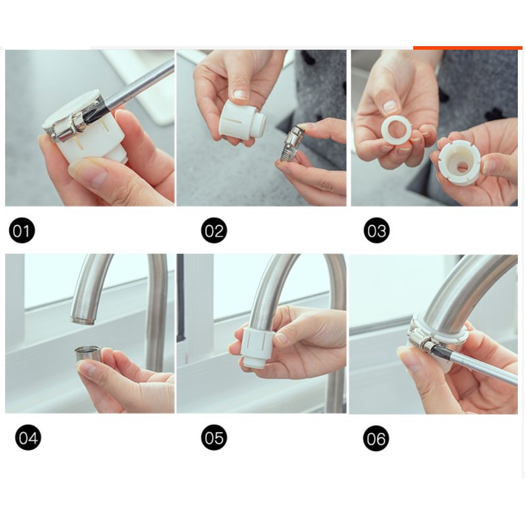 ❷ Dụng cụ nối vòi nước được thiết kế dạng vòi sen với những lỗ phun siêu nhỏ giúp lực phun nước mạnh hơn và tiết kiệm nước hơn đảm bảo hiệu quả thiết thực và tiết kiệm được một lượng nước tối đa. Vòi nước xoay 360 độ về nhiều hướng khác nhau giúp bạn thuận tiện hơn khi rửa chén bát, rau củ, thực phẩm,…hay dễ dàng hơn trong việc lau chùi bồn nước.
