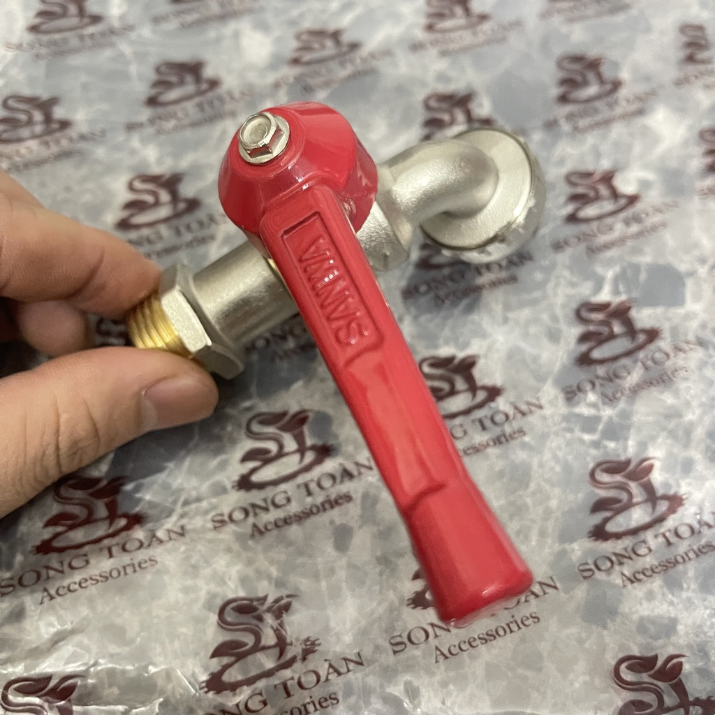 [VÒI THÁI LAN] Vòi hồ xả nước Sanwa tay gạt có đầu ra ren 3/4 (27) gắn đuôi chuột lắp ống mềm - Bằng Đồng mạ crom