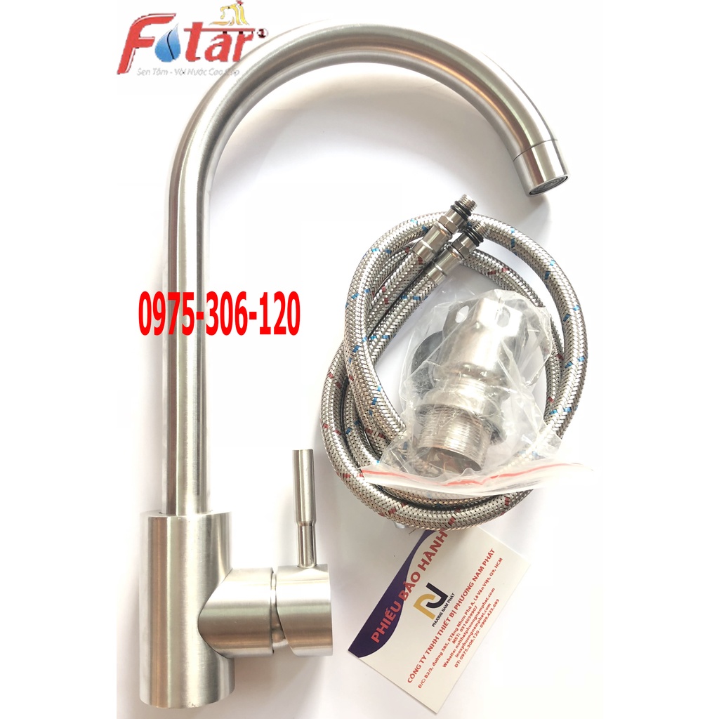 [VÒI TRÒN NƯỚC MẠNH] Vòi Rửa Chén Bát Nóng Lạnh INOX 304 N4002 Fotar Quay 360 độ dùng được 2 hộc chậu và 2 dây VÒI SỐ 6