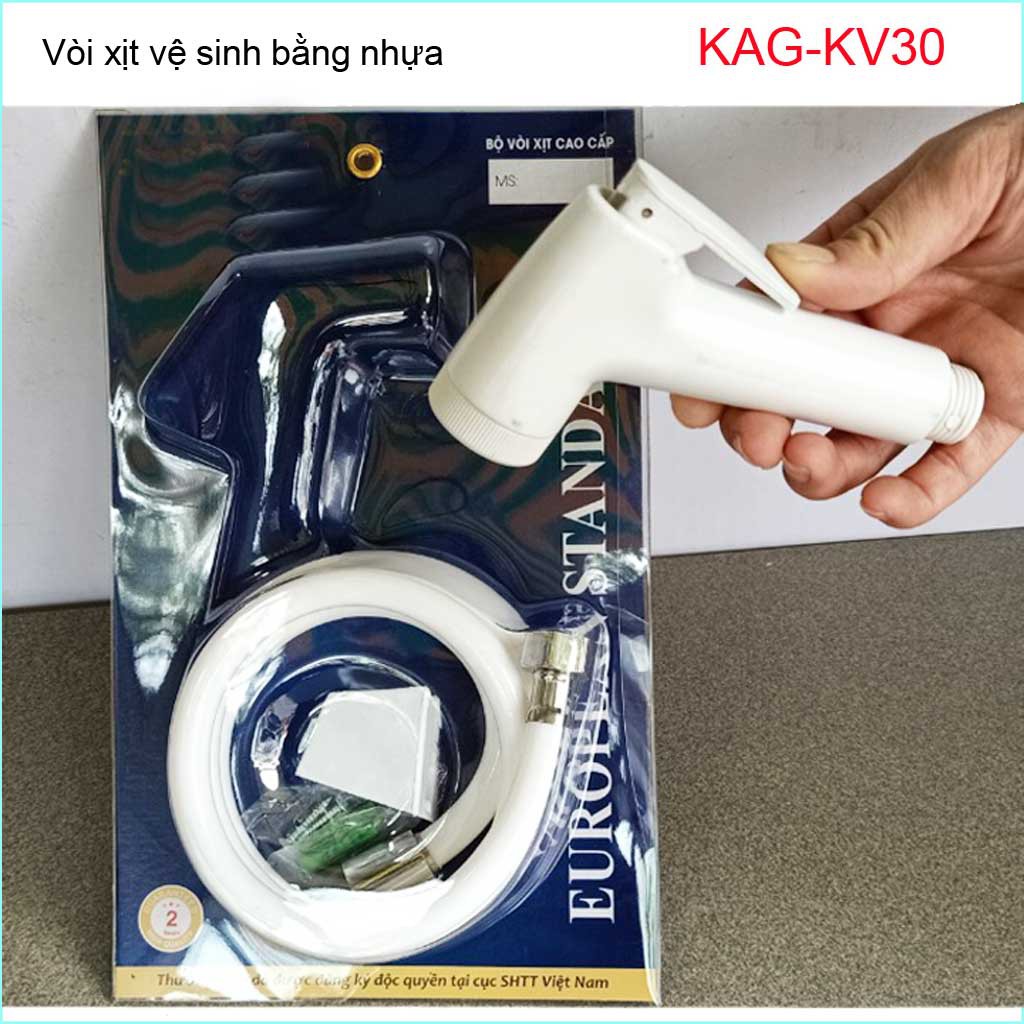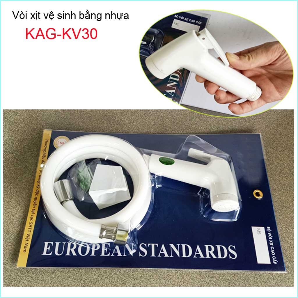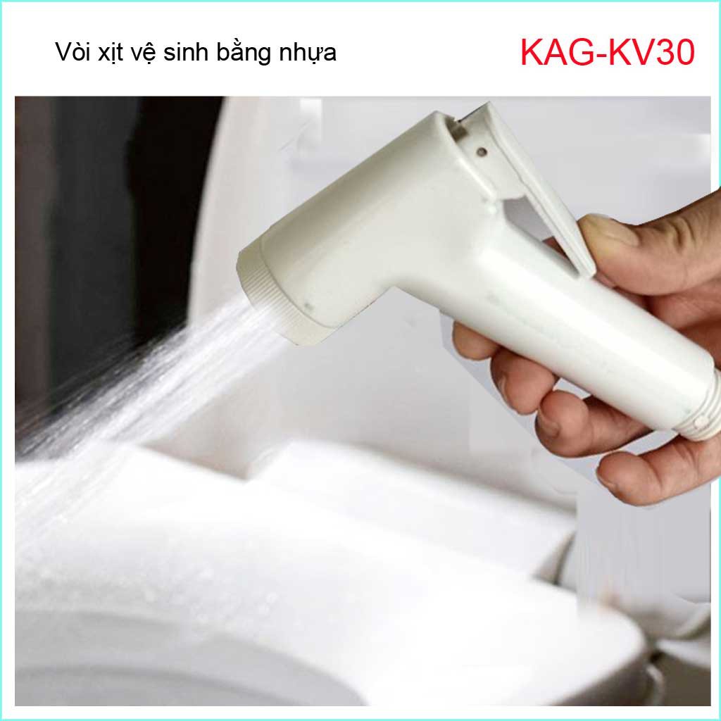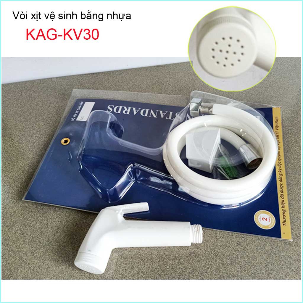 Vòi xịt bồn cầu, vòi xịt rửa nhà tắm, vòi xịt vệ sinh Oscar KAG-KV30 đầu vòi xịt bằng nhựa ABS cao cấp, có độ cứng cao, màu trắng luôn cảm giác sạch sẽ, dây xịt chịu được áp lực cao.
