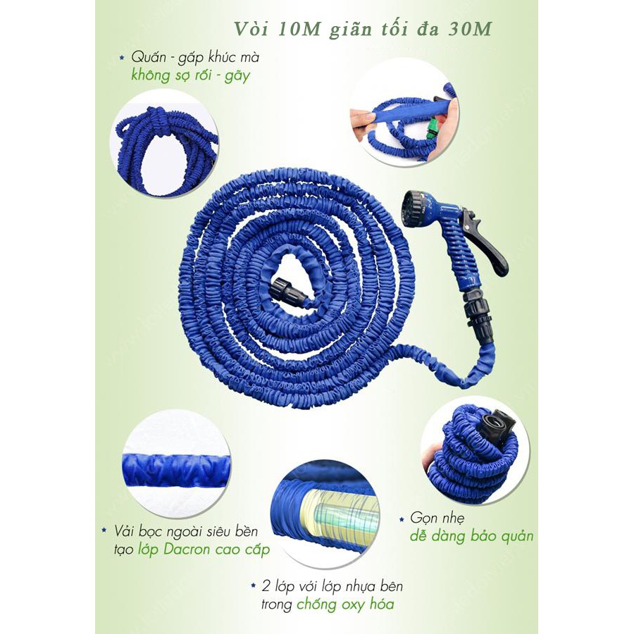 Vòi 30m có ưu điểm là thao tác lắp ráp đơn giản, ống không bao giờ bị xoay, rối hoặc xoắn lại, tiết kiệm nước nhiều hơn so với các vòi phun nước thông thường khác. Đầu vòi có thể điều chỉnh được mức nước phun ra phù hợp cho từng mục đích sử dụng. Bạn có thể sử dụng vòi vào nhiều mục đích khác nhau như: rửa xe, tưới cây, vệ sinh sân, vệ sinh nhà cửa…